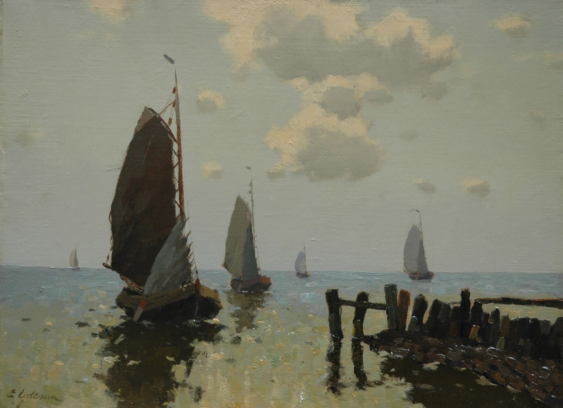 De van origine Friese schilder Egnatius Ydema woonde vrijwel zijn hele leven in Den Haag. In zijn robuuste landschappen getuigen stemming en tonaliteit van verbondenheid met de Haagse School. Dit leidde samen met een eigenzinnig kleurenpalet tot een zeer herkenbare eigen stijl. Aanvankelijk, in de jaren 90, schilderde Ydema vooral vaarten en plassen in Zuid Holland. Omstreeks 1909 kocht hij een Staverse jol, waarvoor hij een ligplaats vond in Grou. Vanaf die tijd trok hij met grote regelmaat naar Friesland om de meren op te gaan. Friese dorpjes aan het water, brede vaarten en boten vormen voortaan zijn onderwerp. Het werk van Ydema was in zijn tijd al zeer geliefd, zozeer zelfs dat het ook werd vervalst.