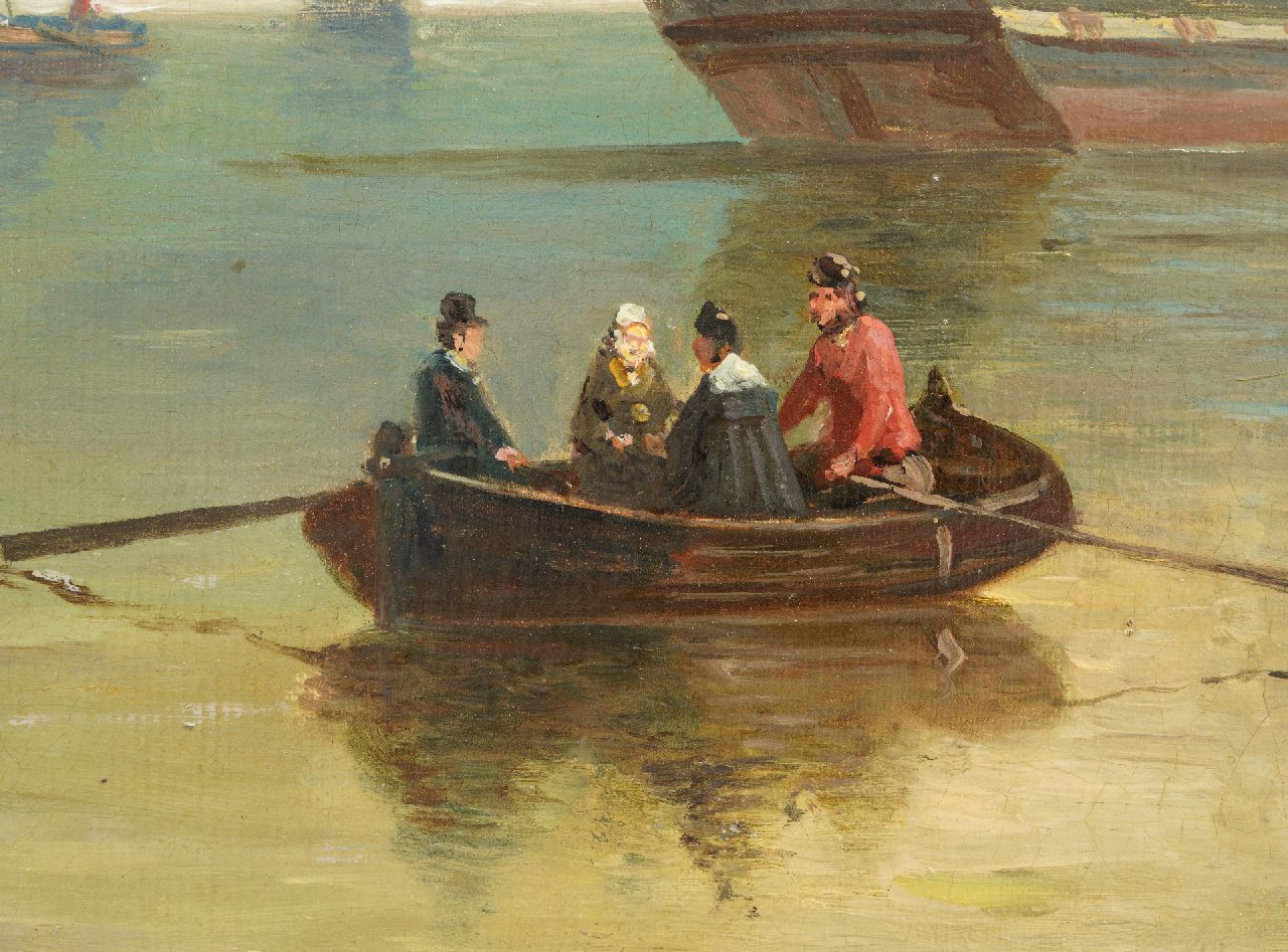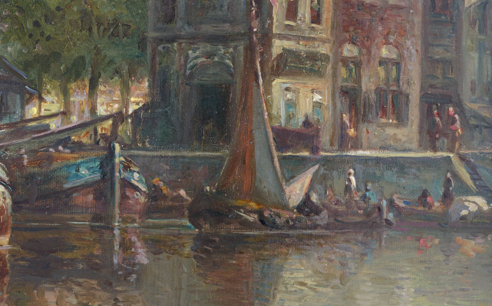 Elias Pieter van Bommel was een leerling van de Rijksacademie van Amsterdam en van de iets oudere Amsterdamse landschapschilder George Andries Roth. Aanvankelijk schilderde Van Bommel onder invloed van zijn leermeester landschappen, later ging hij over op het schilderen van fijn uitgewerkte stadsgezichten met levendige stoffage. Inspiratie deed hij op in steden als Rotterdam, Dordrecht en Amsterdam. Ook maakte hij studiereizen door België, Duitsland, Frankrijk en Italië.