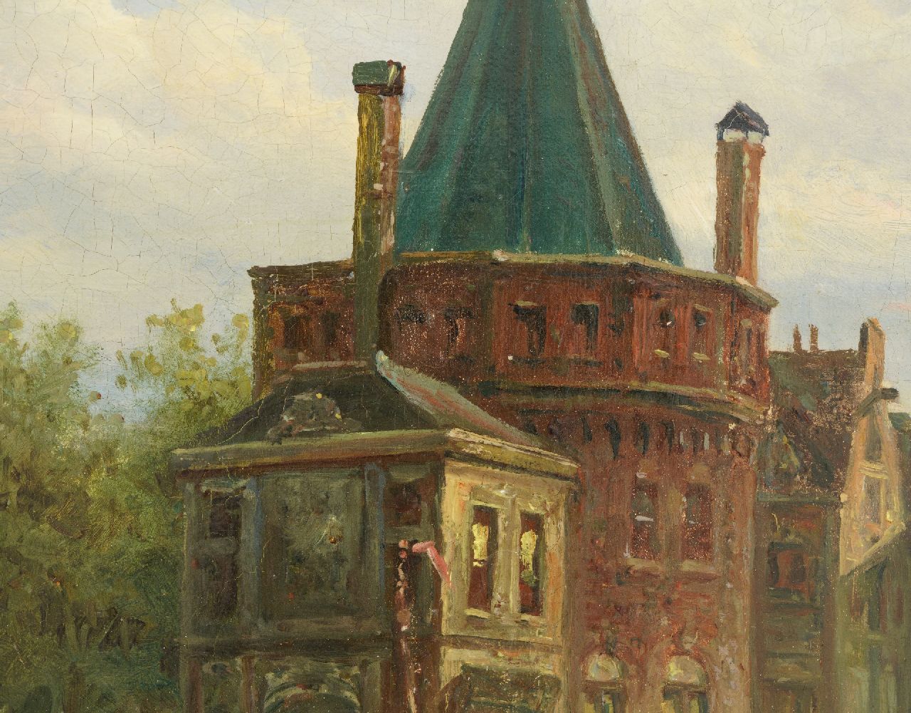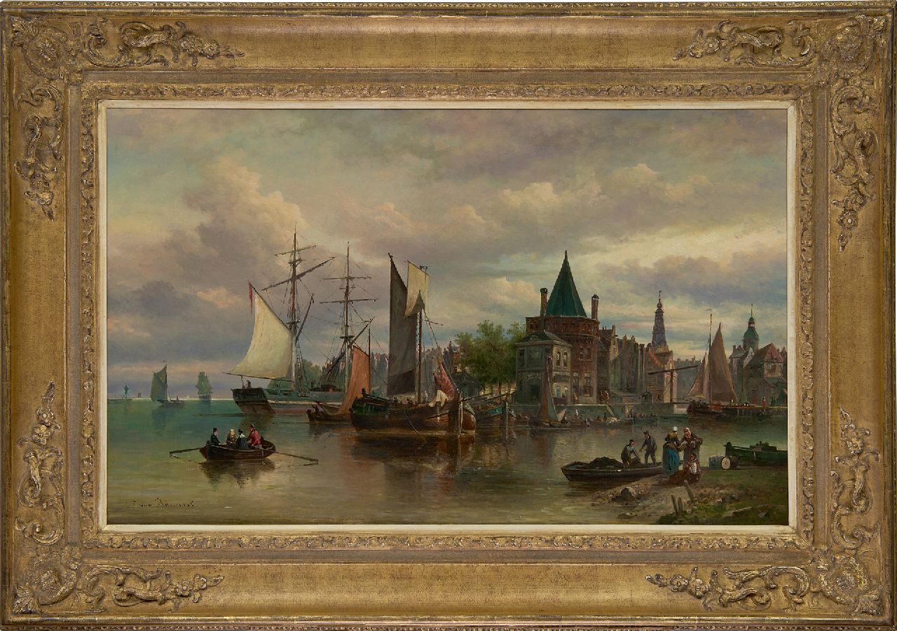 Elias Pieter van Bommel kunstwerk • schilderij • voorheen te koop Fantasiegezicht op Amsterdam met de Schreierstoren