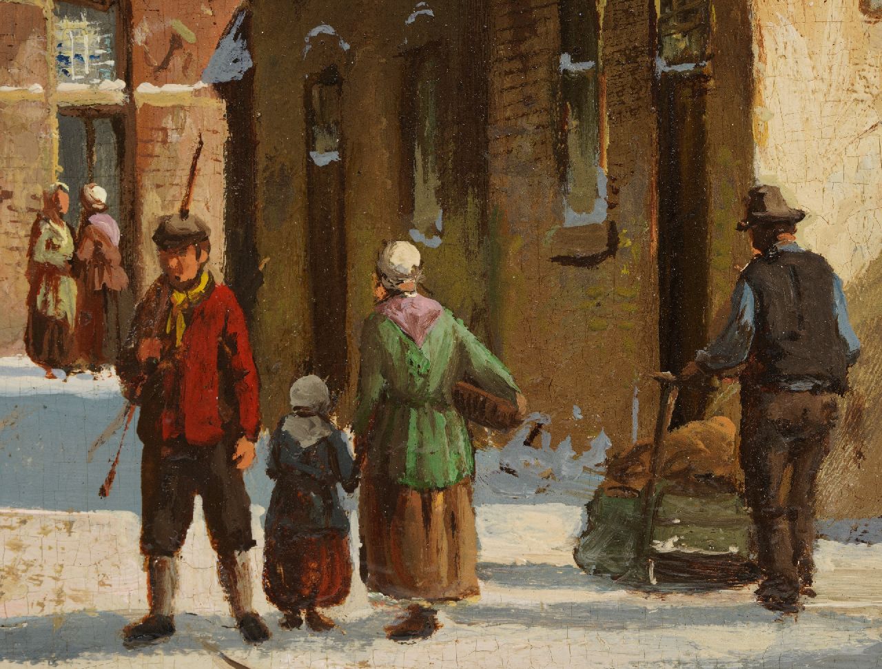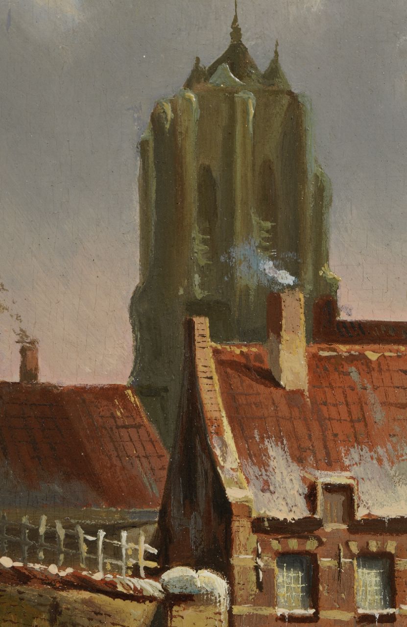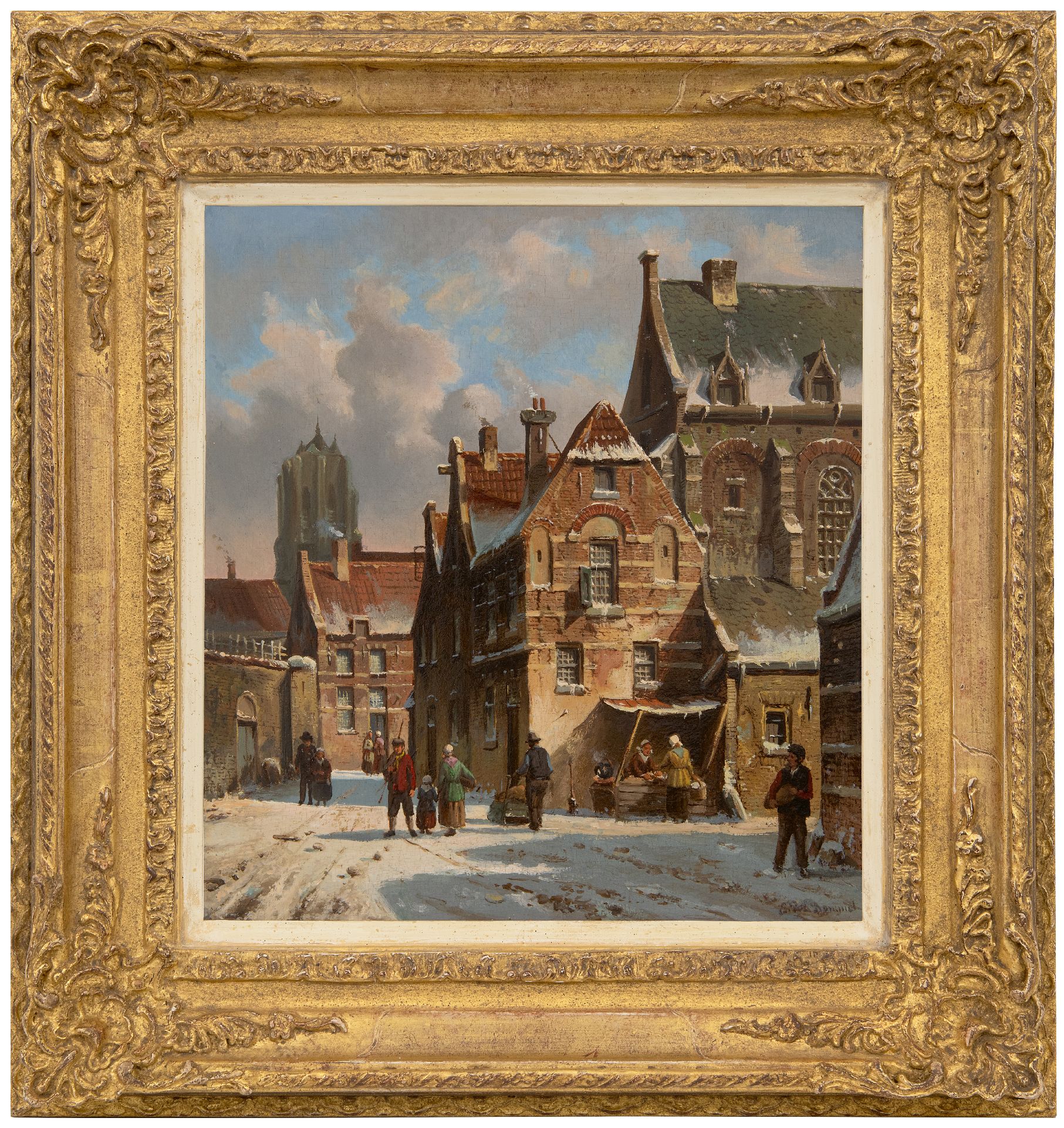 Elias Pieter van Bommel kunstwerk • schilderij • voorheen te koop Hollands stadsgezicht in de winter