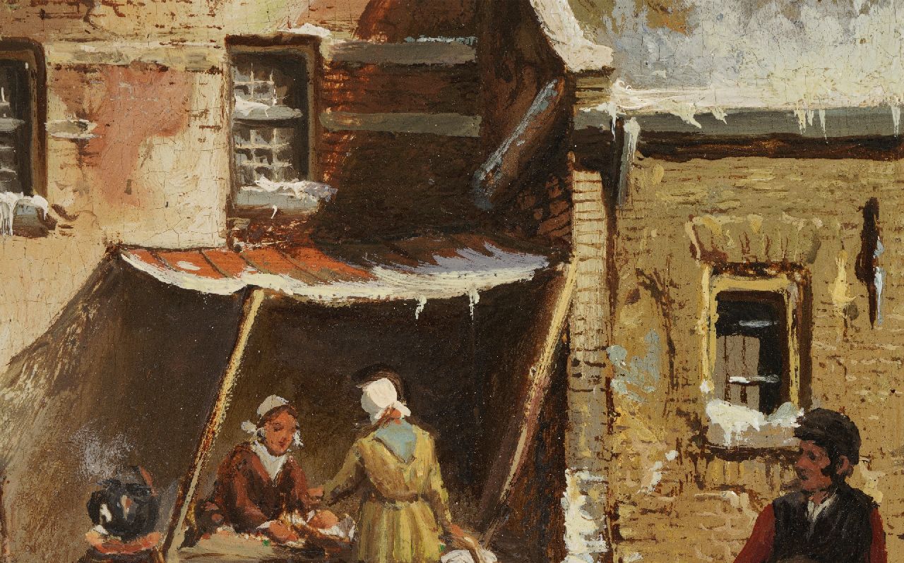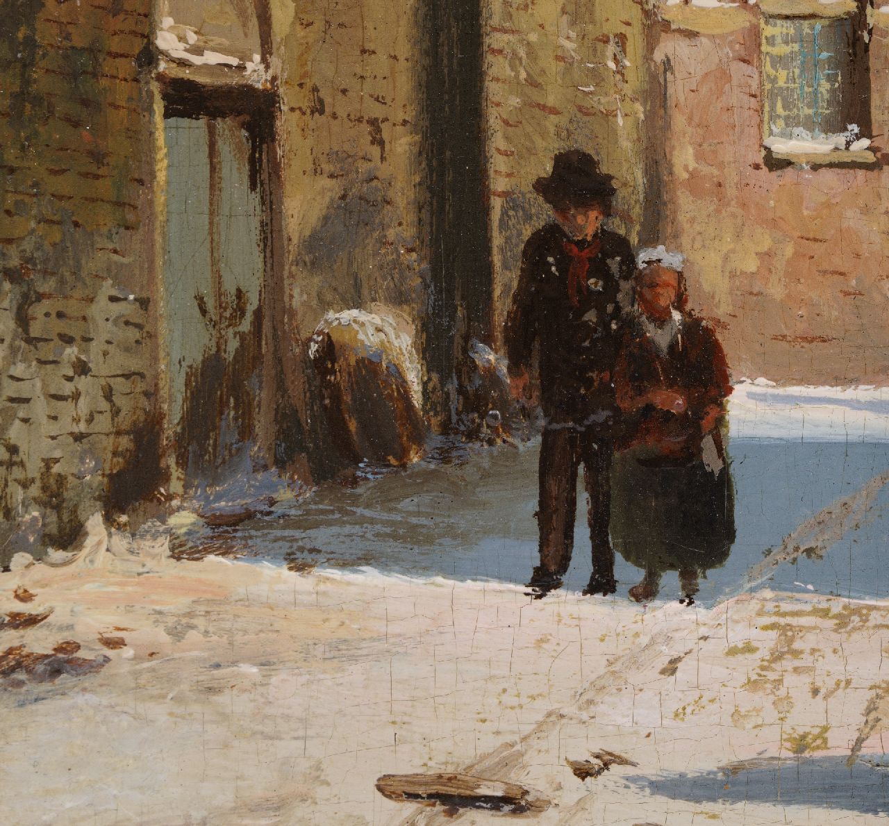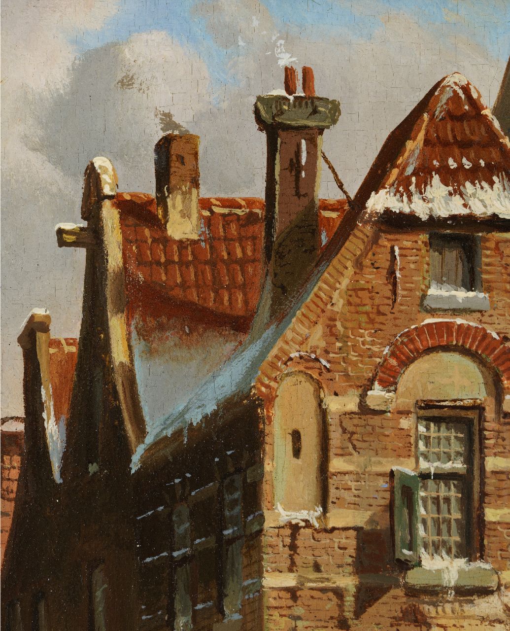 Elias Pieter van Bommel kunstwerk • schilderij • voorheen te koop Hollands stadsgezicht in de winter