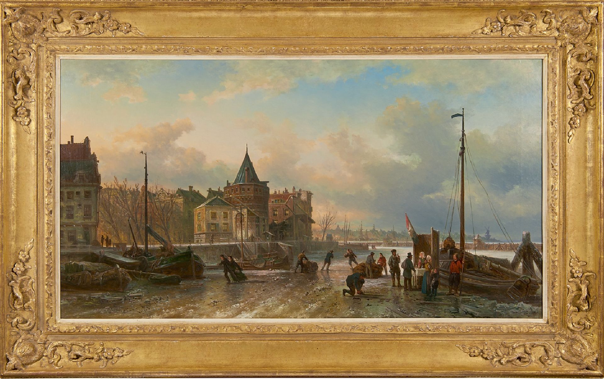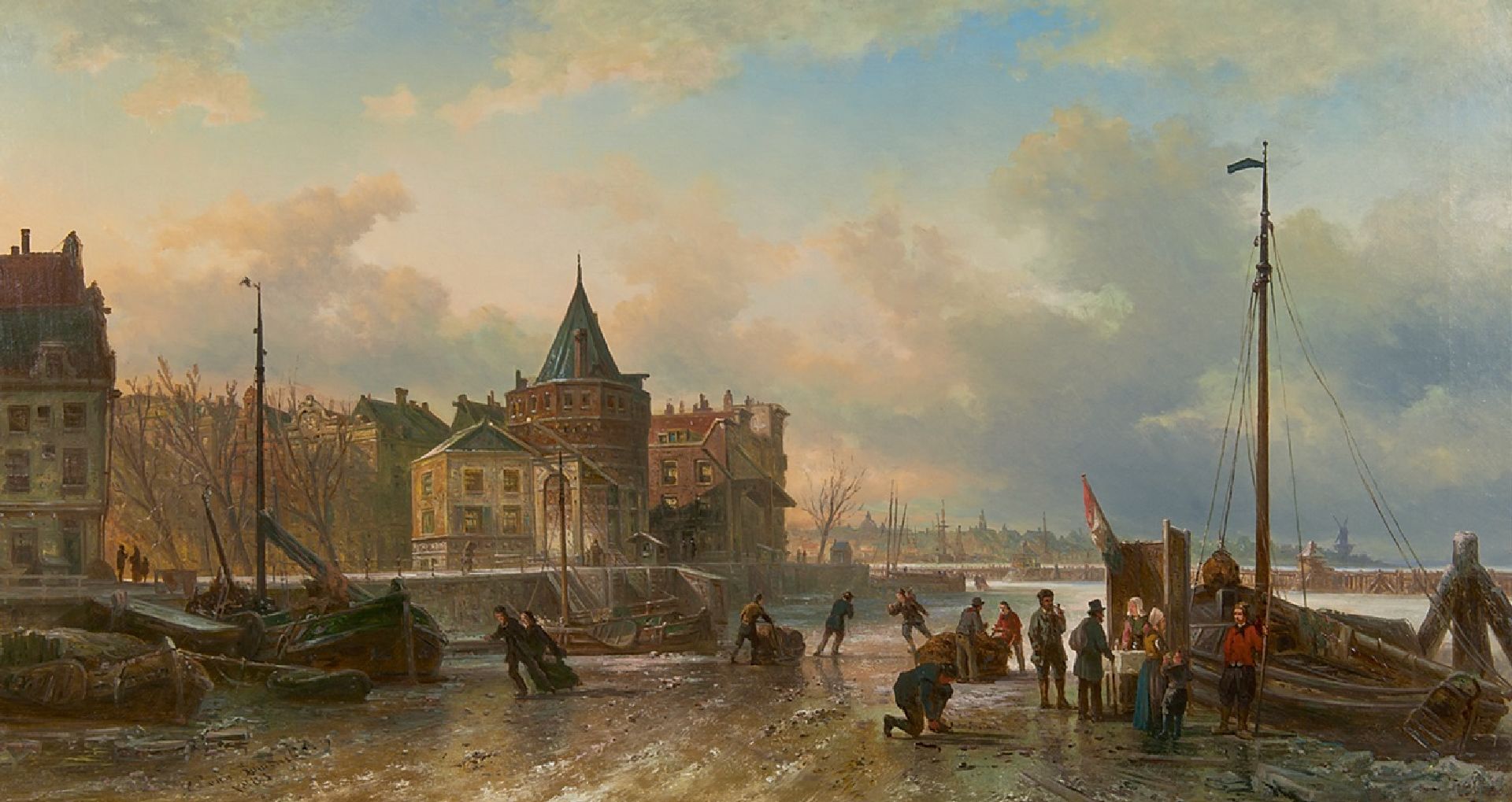 Elias Pieter van Bommel kunstwerk • schilderij • voorheen te koop IJsvertier bij de Schreierstoren, Amsterdam