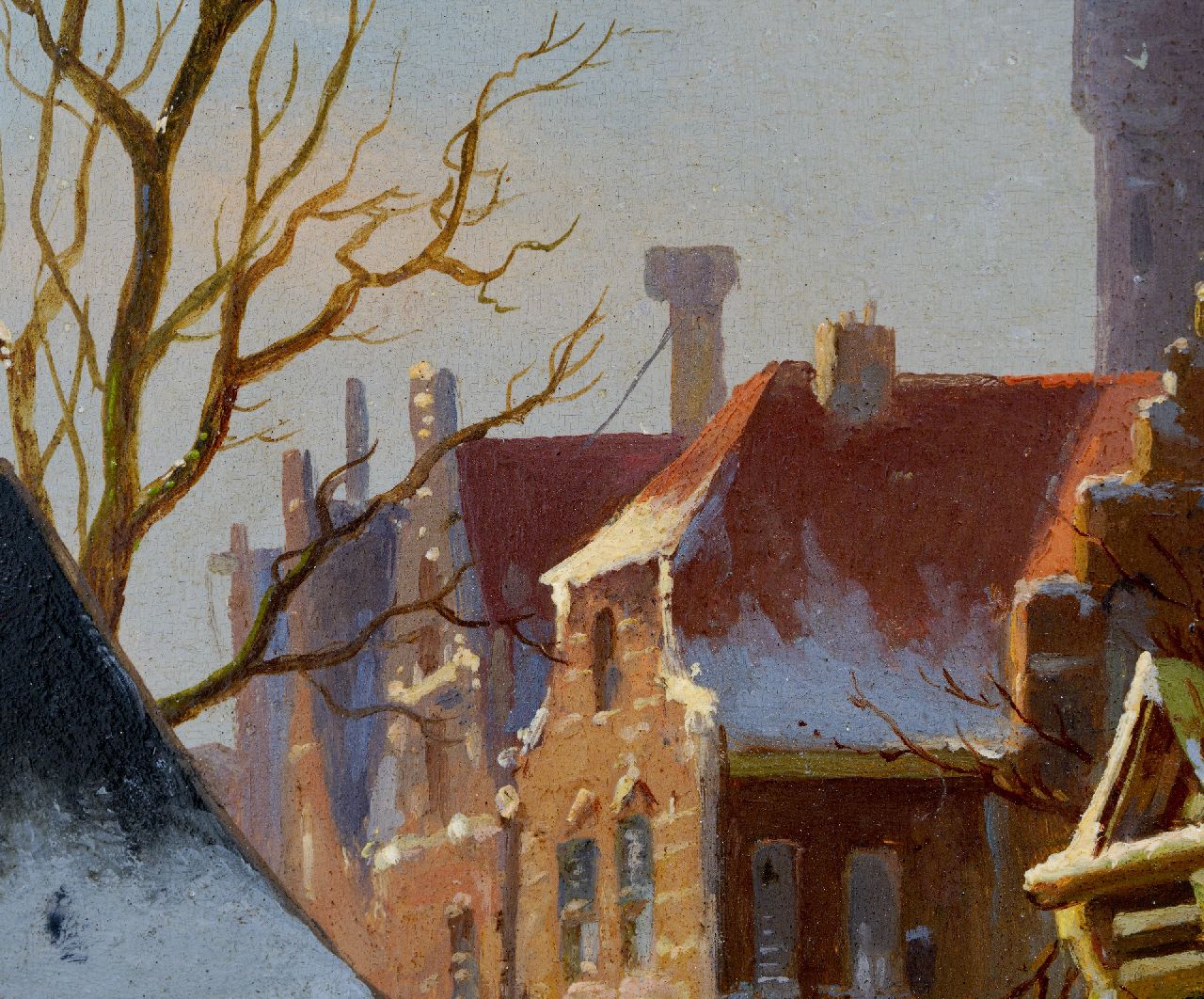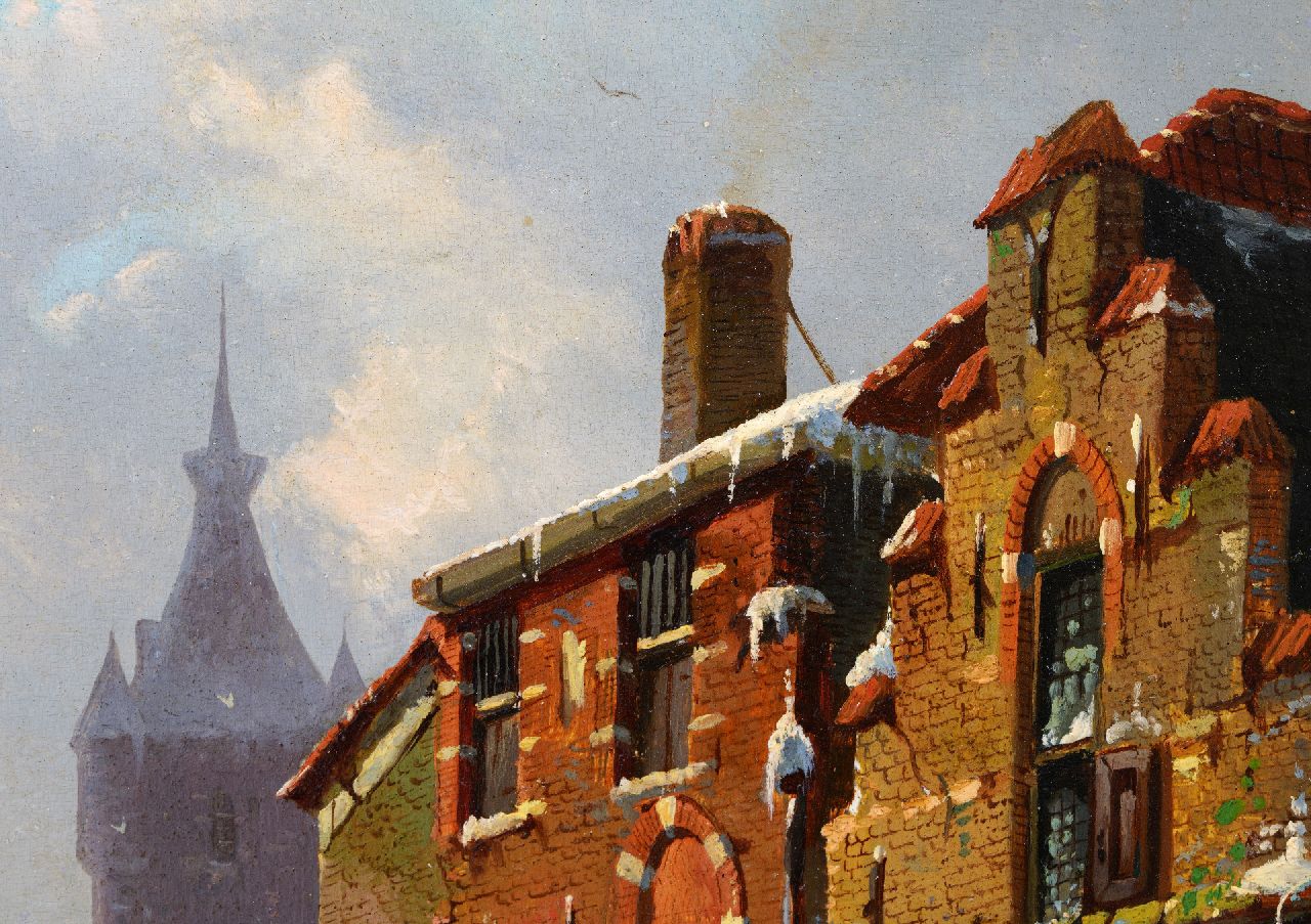 Elias Pieter van Bommel kunstwerk • schilderij • te koop Winters stadsgezicht met de Oude Kerk van Delft (naar A. Eversen)