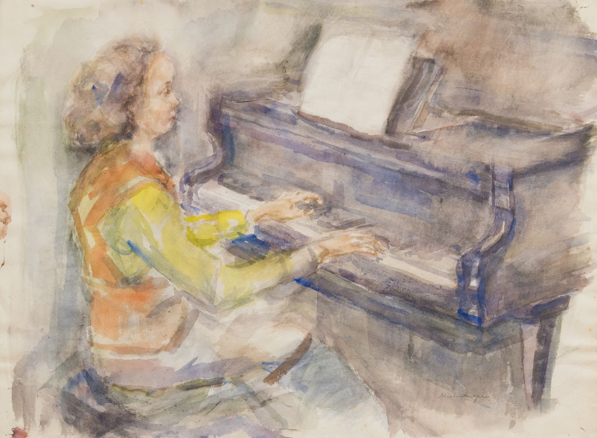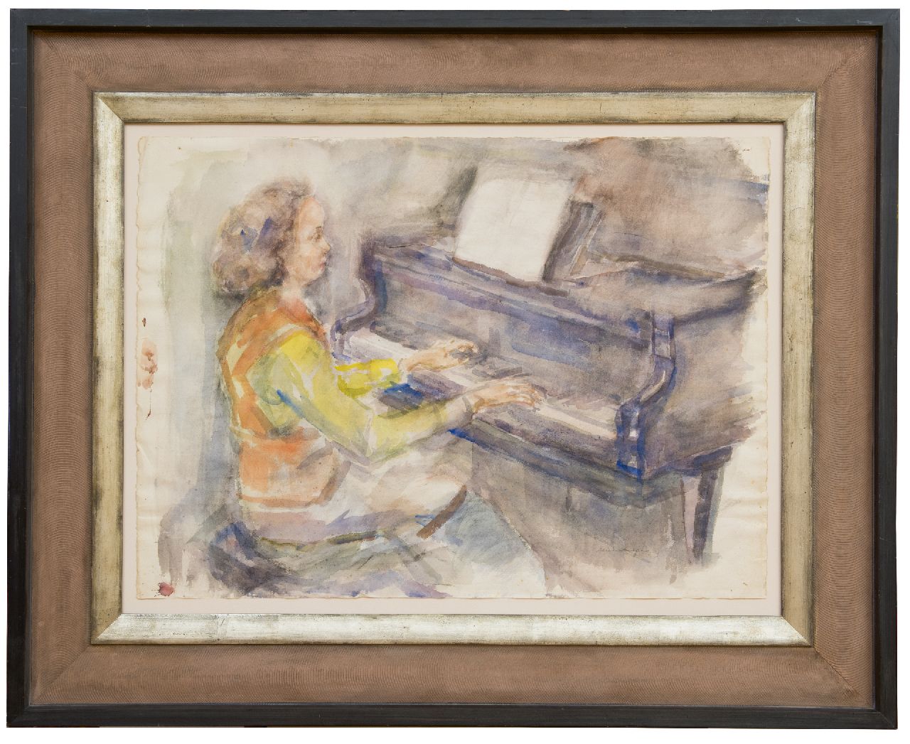 Elie Neuburger kunstwerk • aquarel • tekening • te koop Pianospelende vrouw
