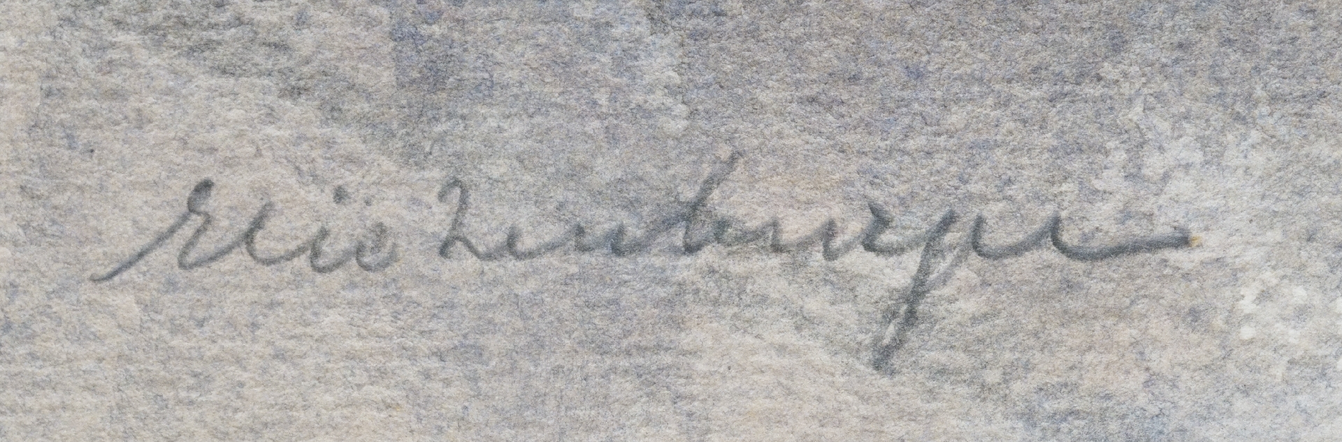 houtskool en aquarel op papier 55,8 x 76,3 cm, gesigneerd rechtsonder