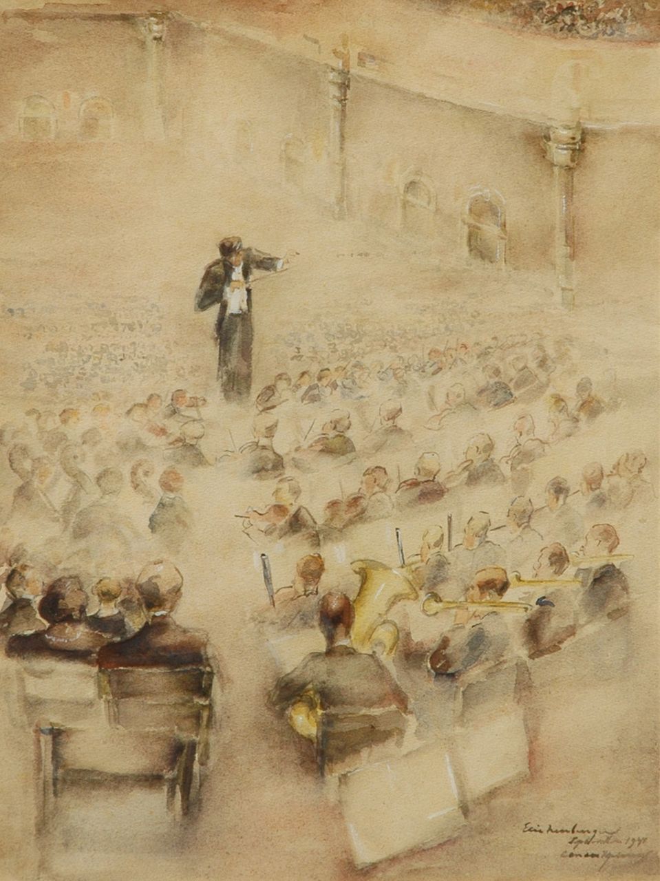 Elie Neuburger kunstwerk • aquarel • tekening • voorheen te koop In het concertgebouw, Amsterdam