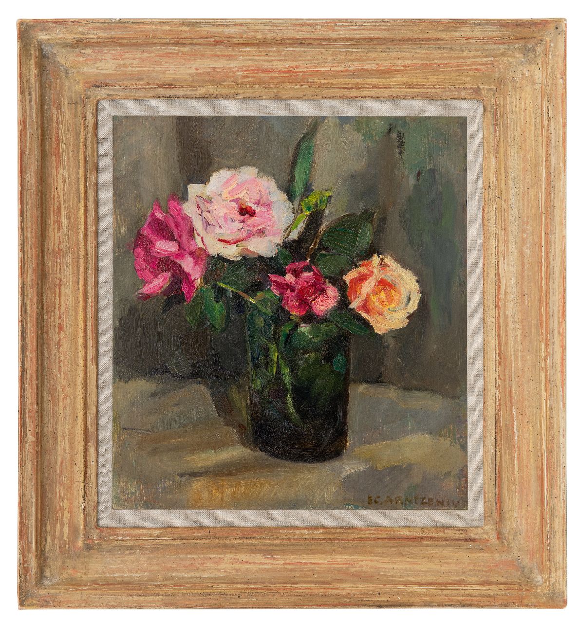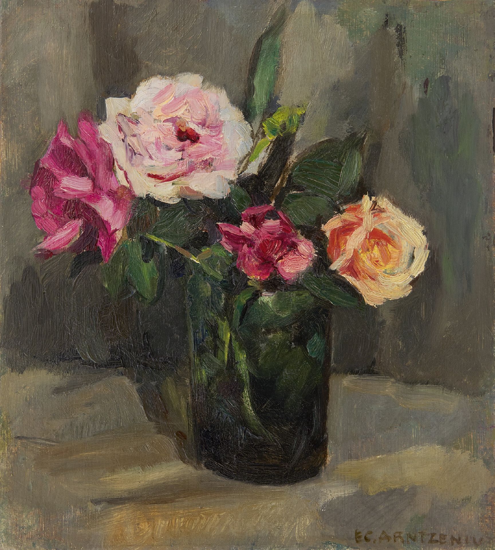 Elise Arntzenius kunstwerk • schilderij • voorheen te koop Rozen in groen glazen vaas