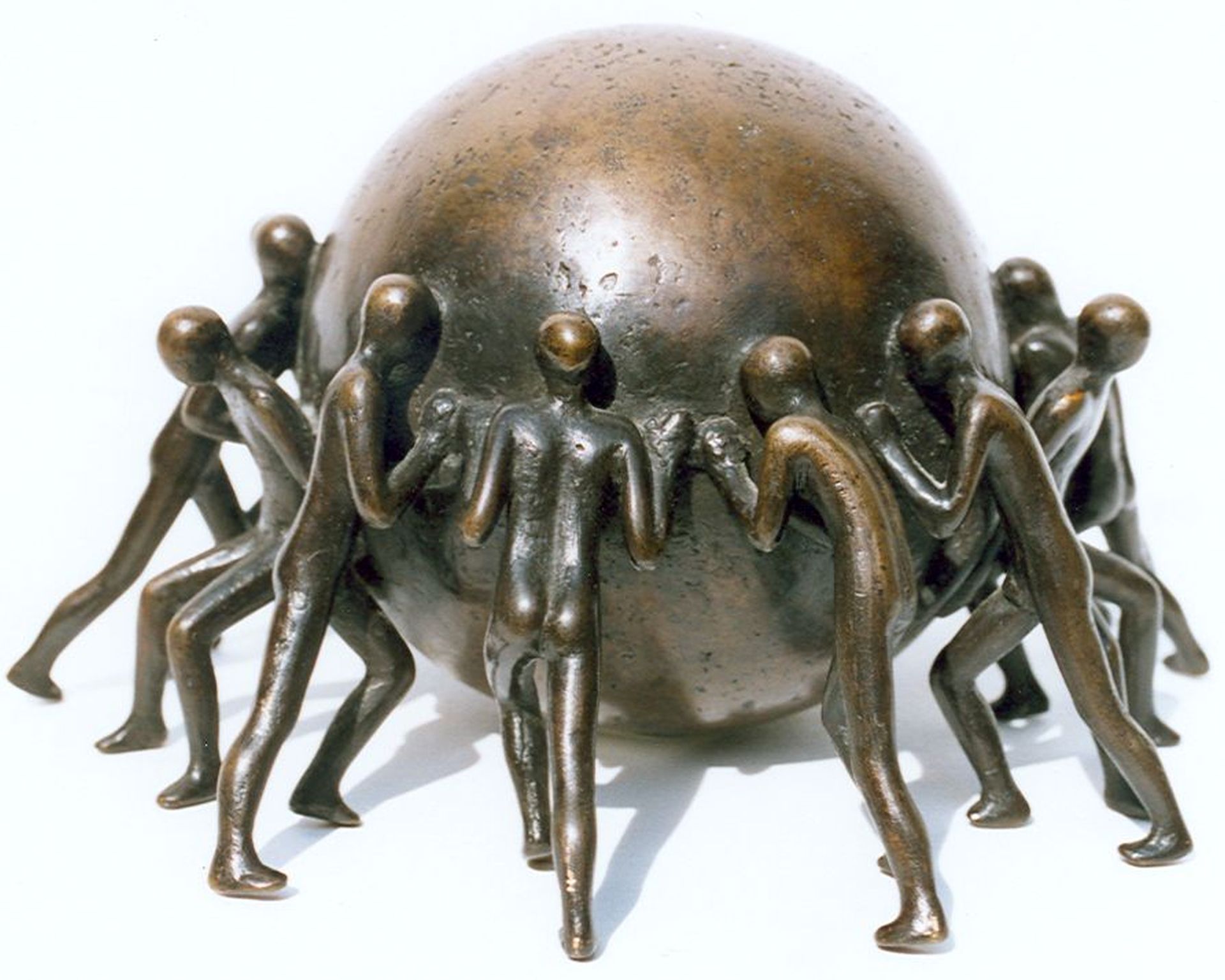 Elly van den Broek kunstwerk • beeld • sculptuur • voorheen te koop Pushing
