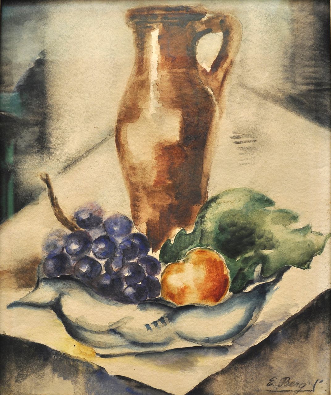 Else Berg kunstwerk • aquarel • tekening • voorheen te koop Fruitschaal en kan op een tafel