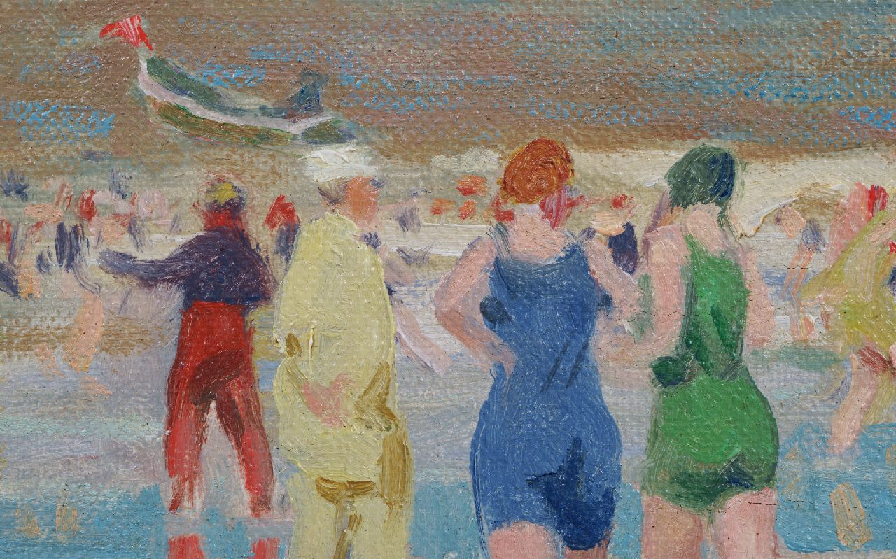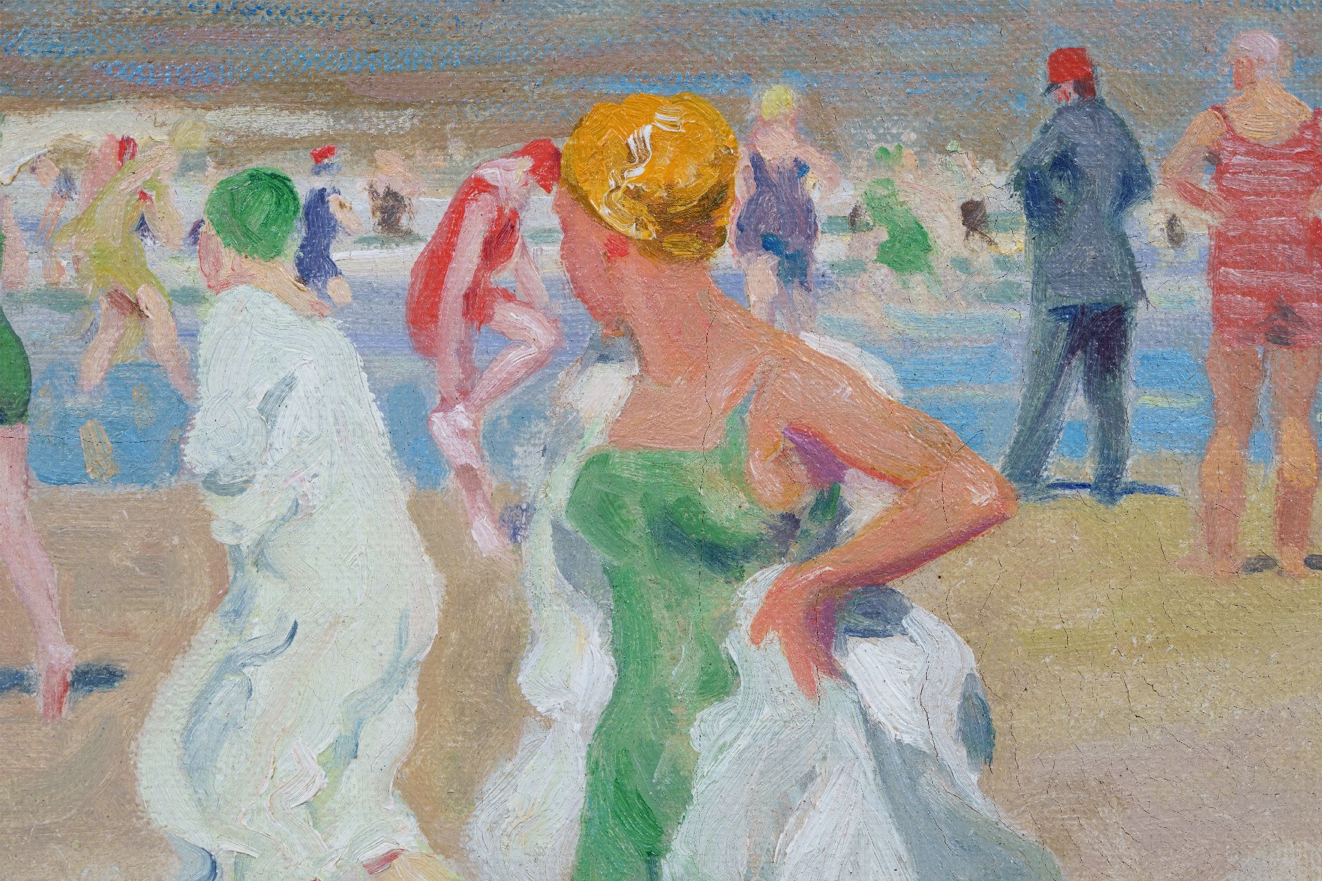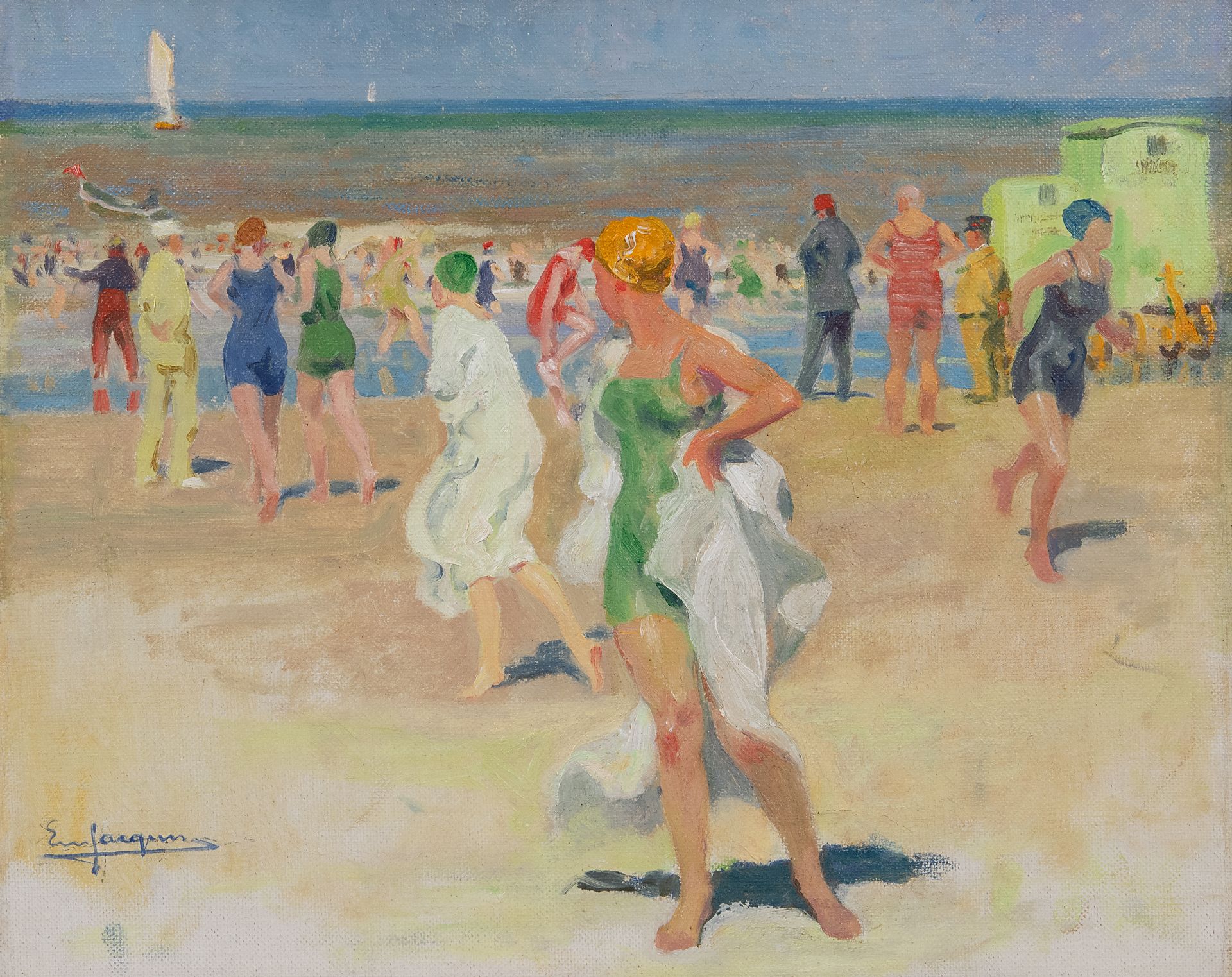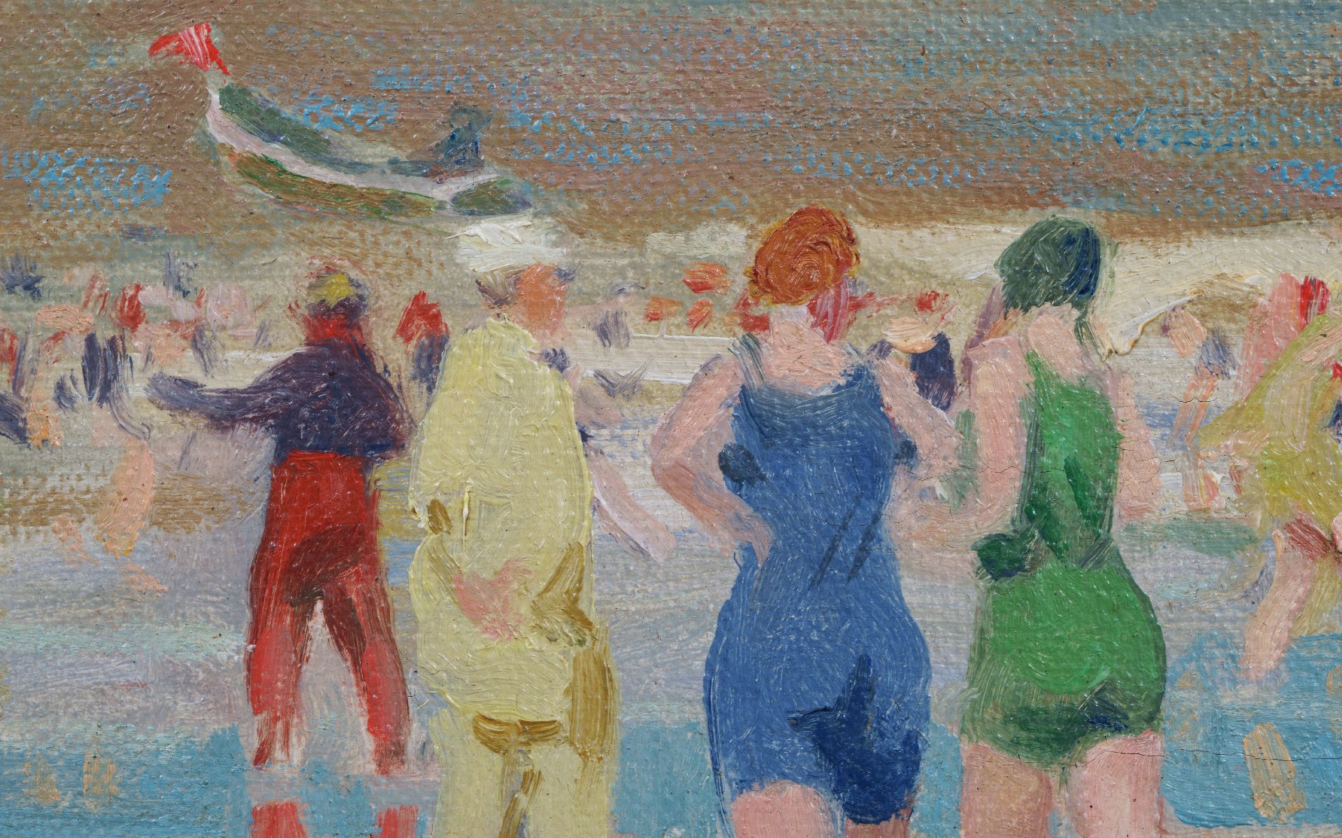 Emile Jacques kunstwerk • schilderij • voorheen te koop Strandgezicht met badgasten