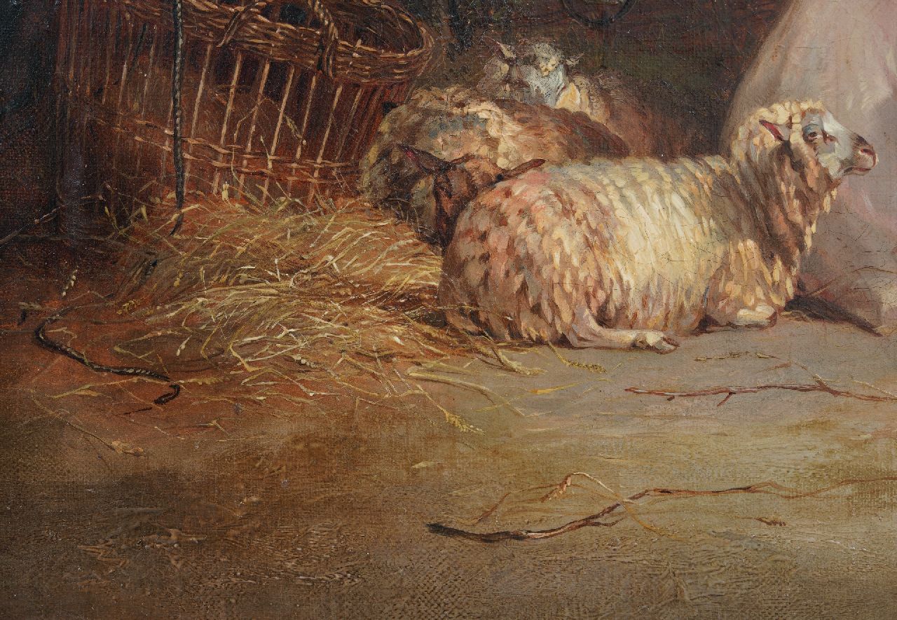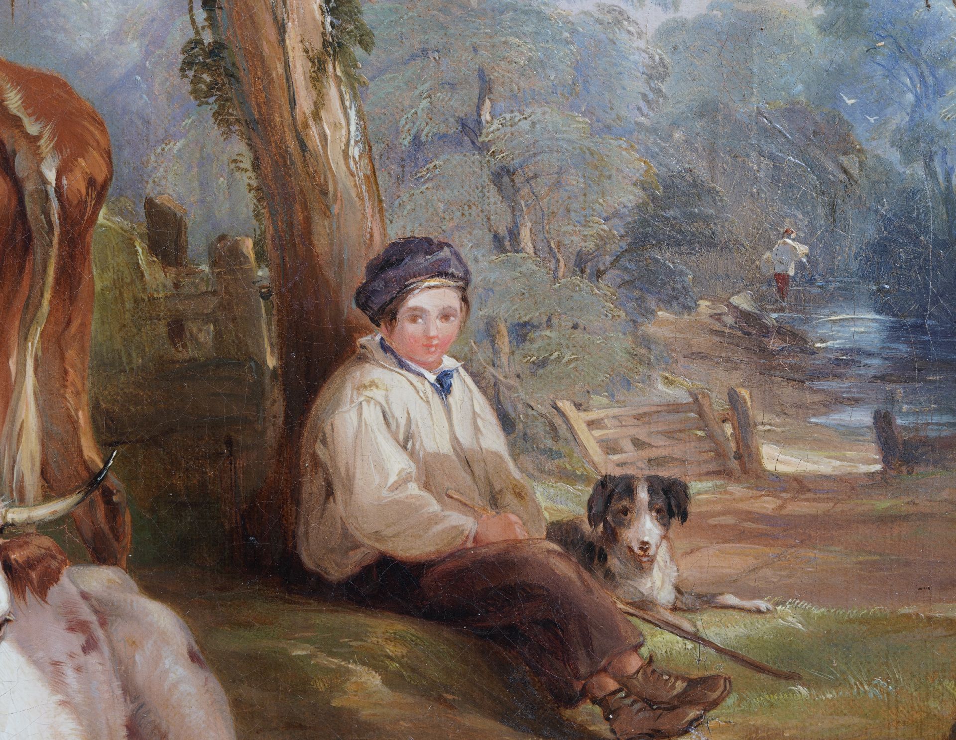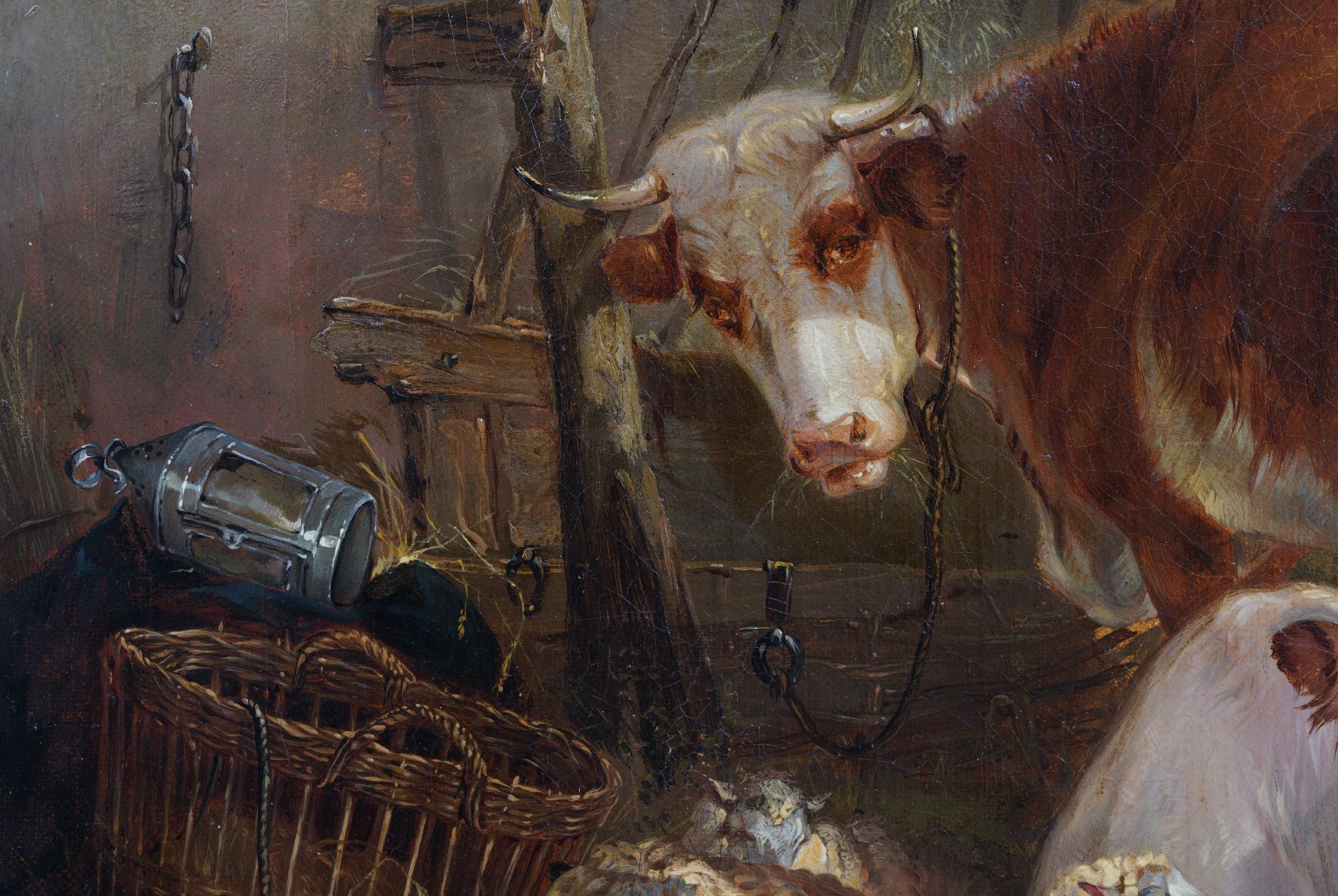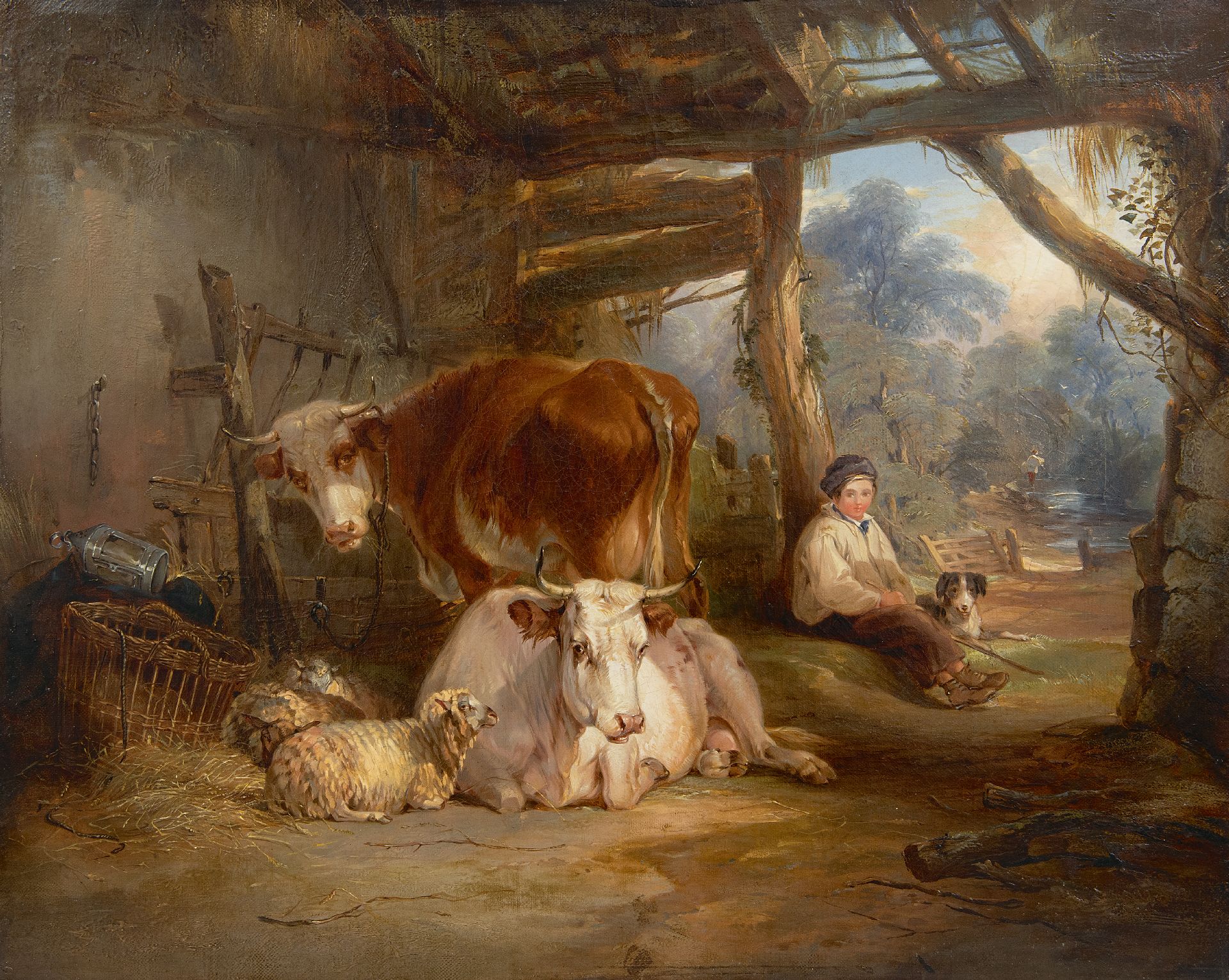 Engelse School kunstwerk • schilderij • te koop Herdertje bij koeien in een stal i.o.