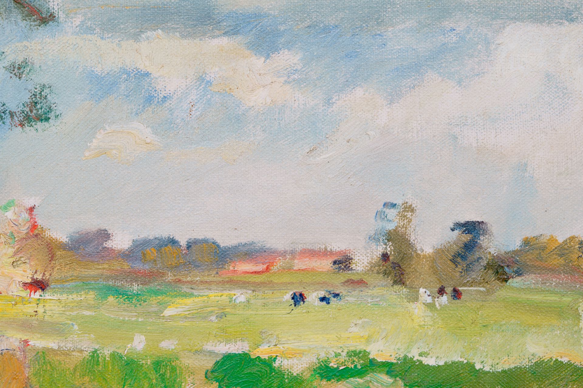 Erasmus Bernhard von Dülmen Krumpelmann | Boerderijen in Drents landschap, olieverf op doek op paneel, 50,4 x 101,1 cm, gesigneerd r.o.