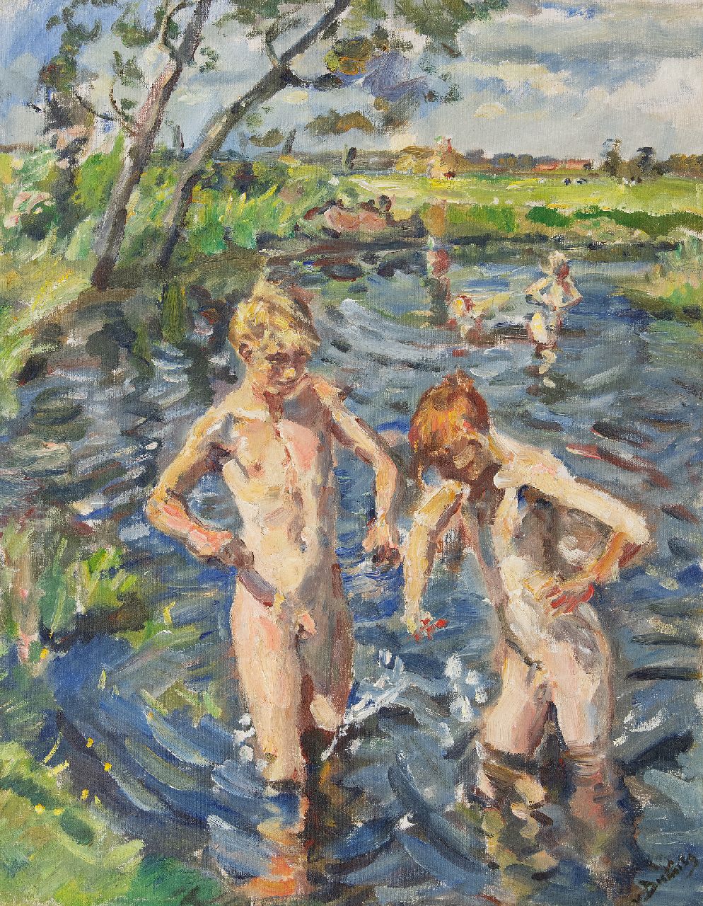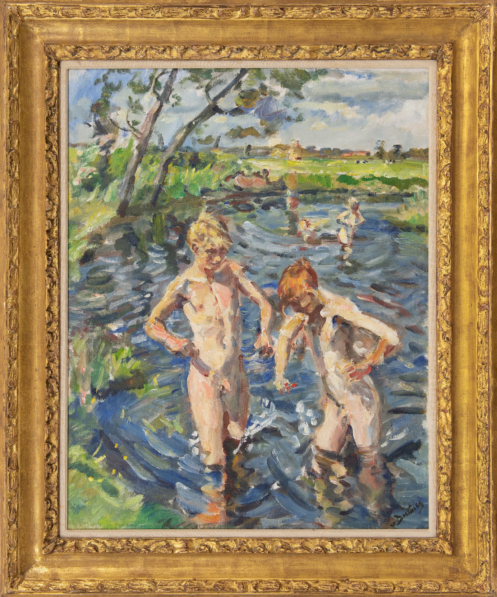 Erasmus Bernhard von Dülmen Krumpelmann kunstwerk • schilderij • te koop Baders in de Drentse Aa