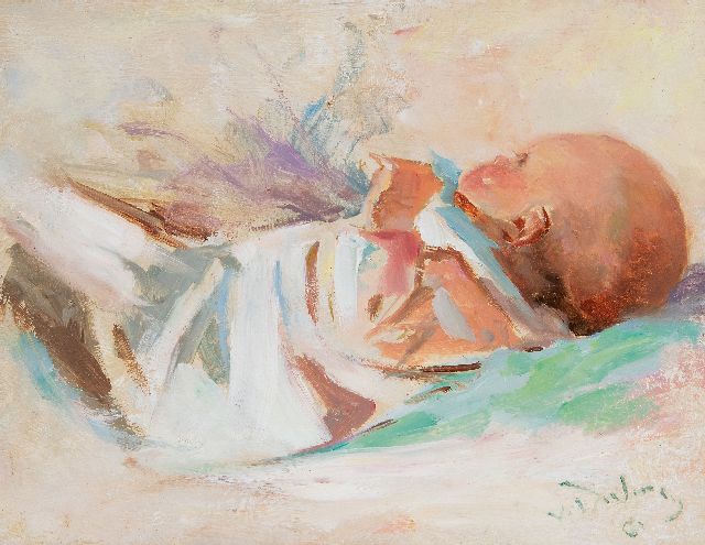 Erasmus Bernhard von Dülmen Krumpelmann | Baby, olieverf op paneel, 18,5 x 23,8 cm, gesigneerd r.o.
