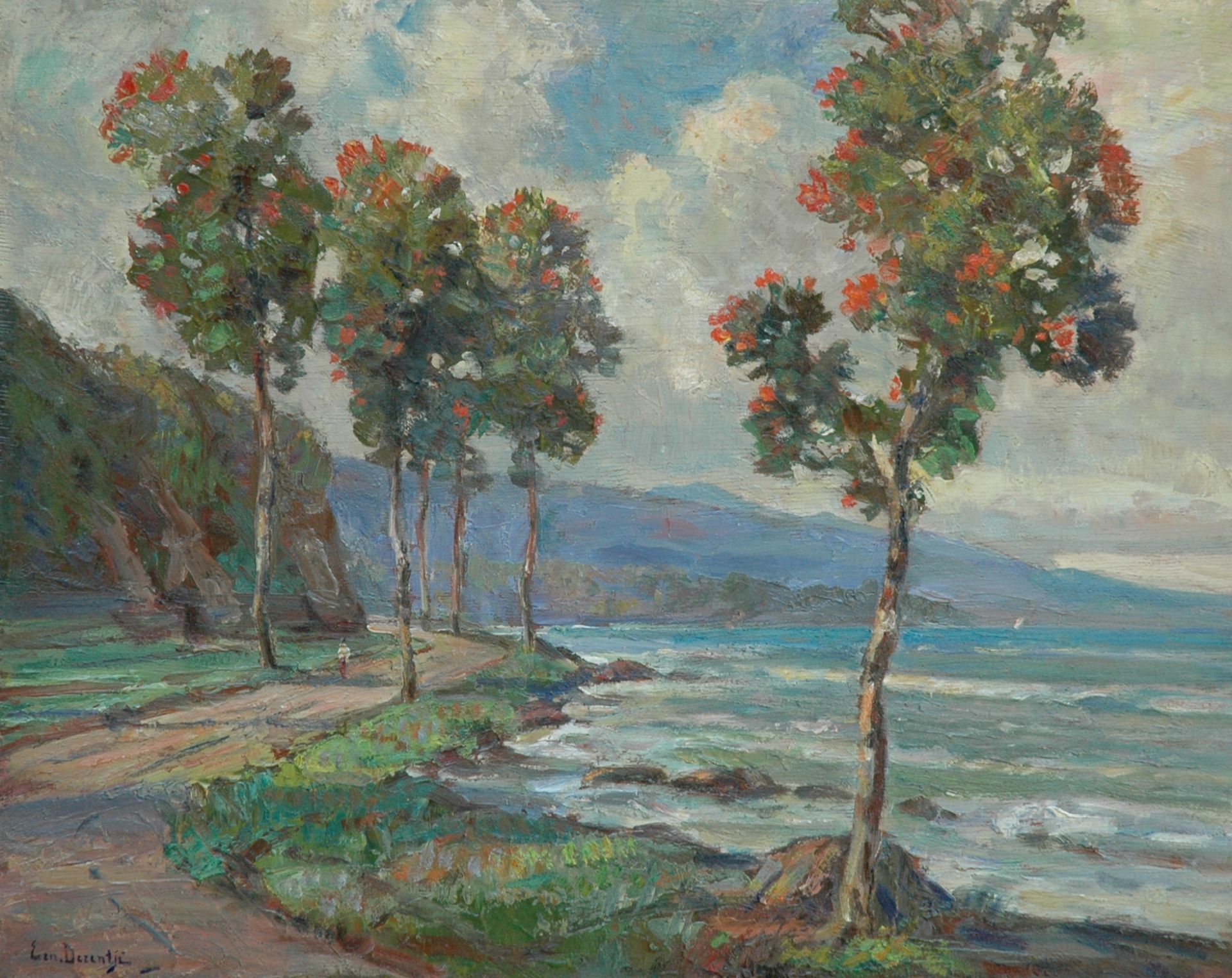 Ernest Dezentjé kunstwerk • schilderij • voorheen te koop Bomen langs de Indonesische kust
