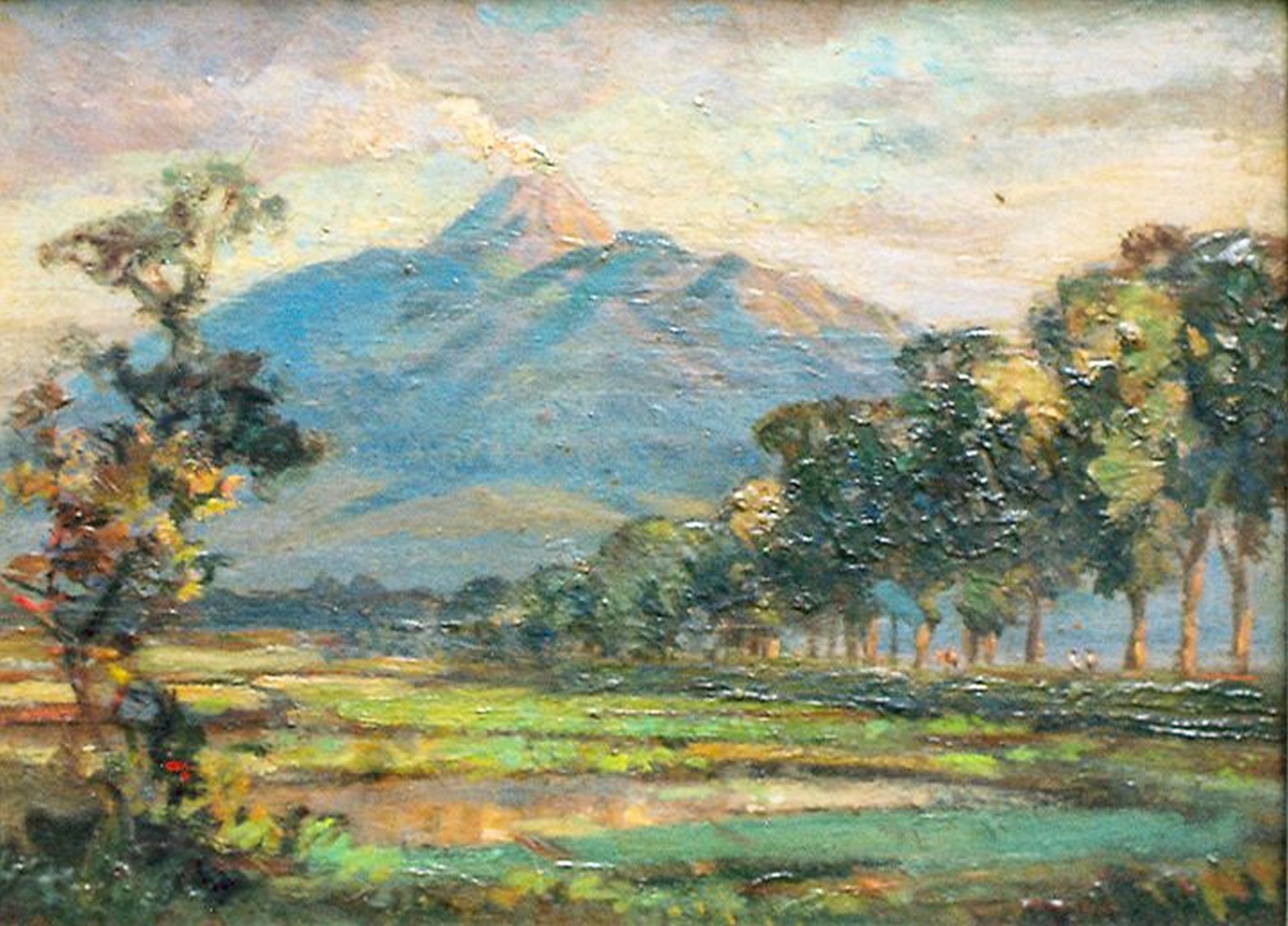 Ernest Dezentjé kunstwerk • schilderij • voorheen te koop Gezicht op de berg Merapi