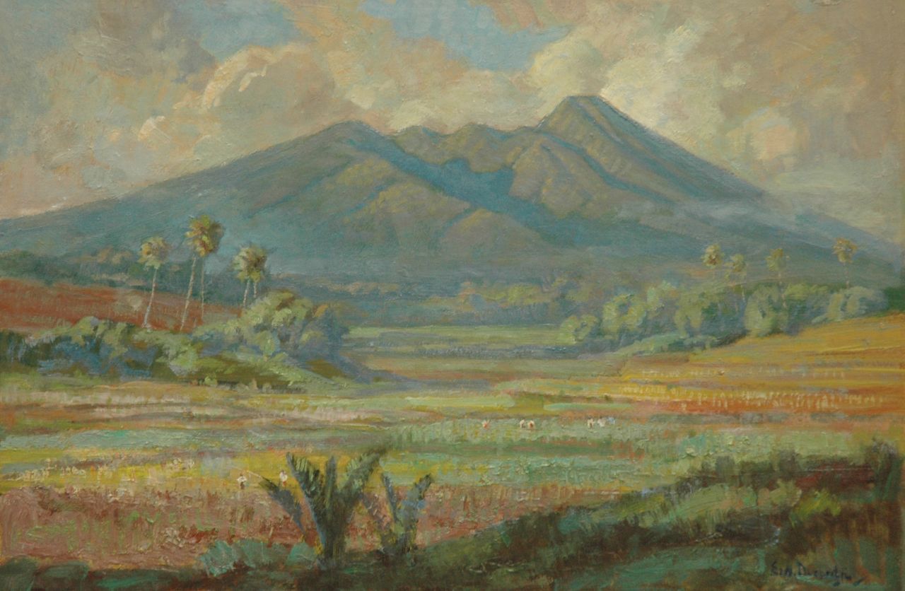 Ernest Dezentjé kunstwerk • schilderij • voorheen te koop Sawa's aan de voet van een vulkaan