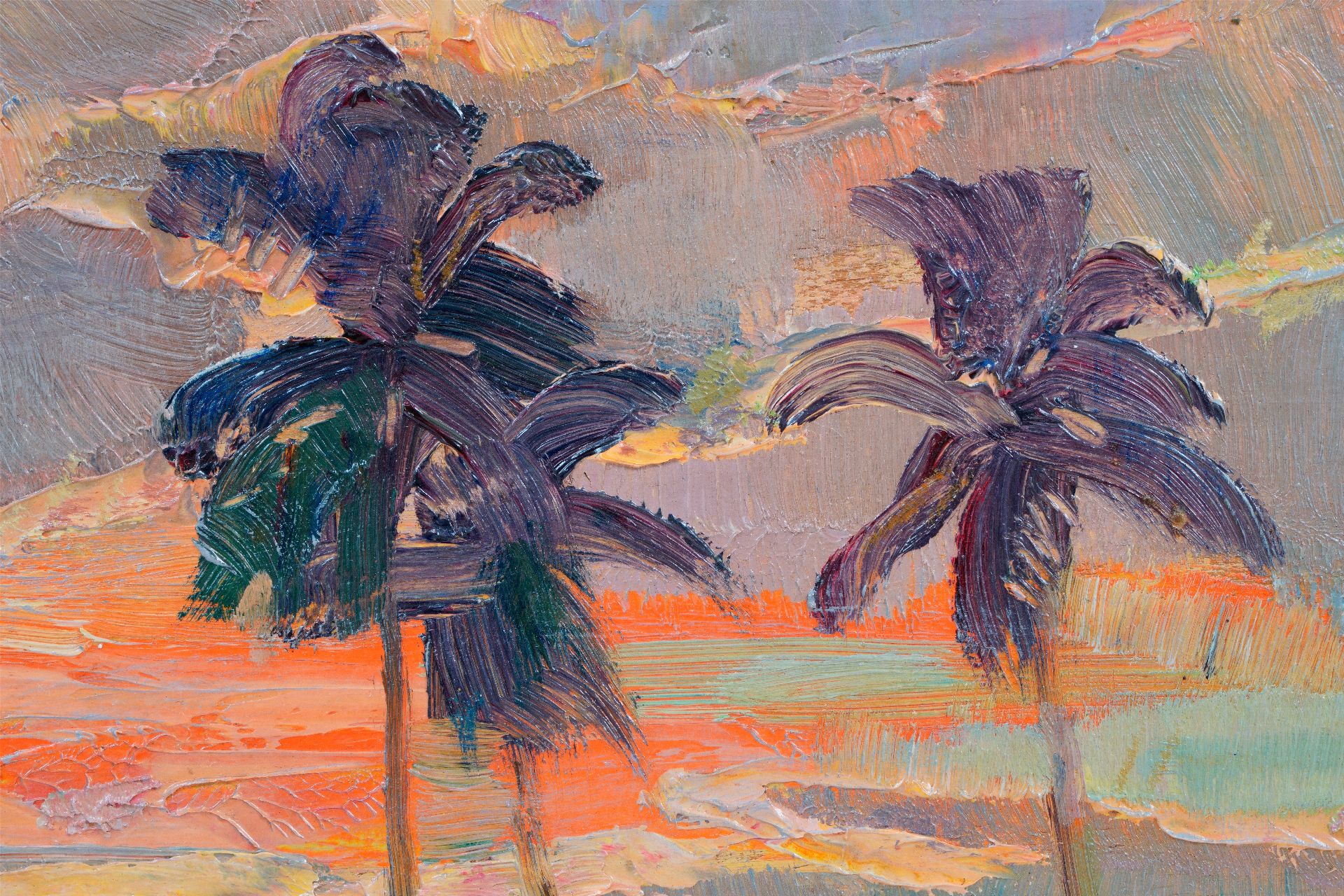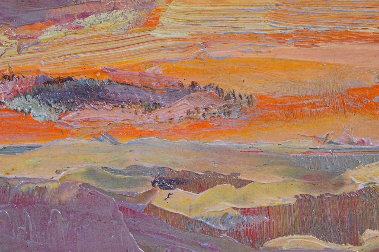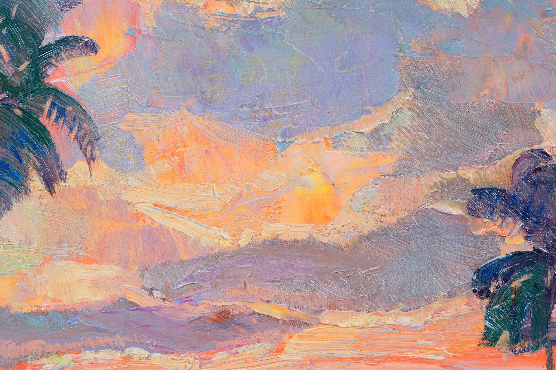 Ernest Dezentjé kunstwerk • schilderij • voorheen te koop Zonsondergang in de omgeving van de kultuurtuin Tjikeumeuh, Buitenzorg