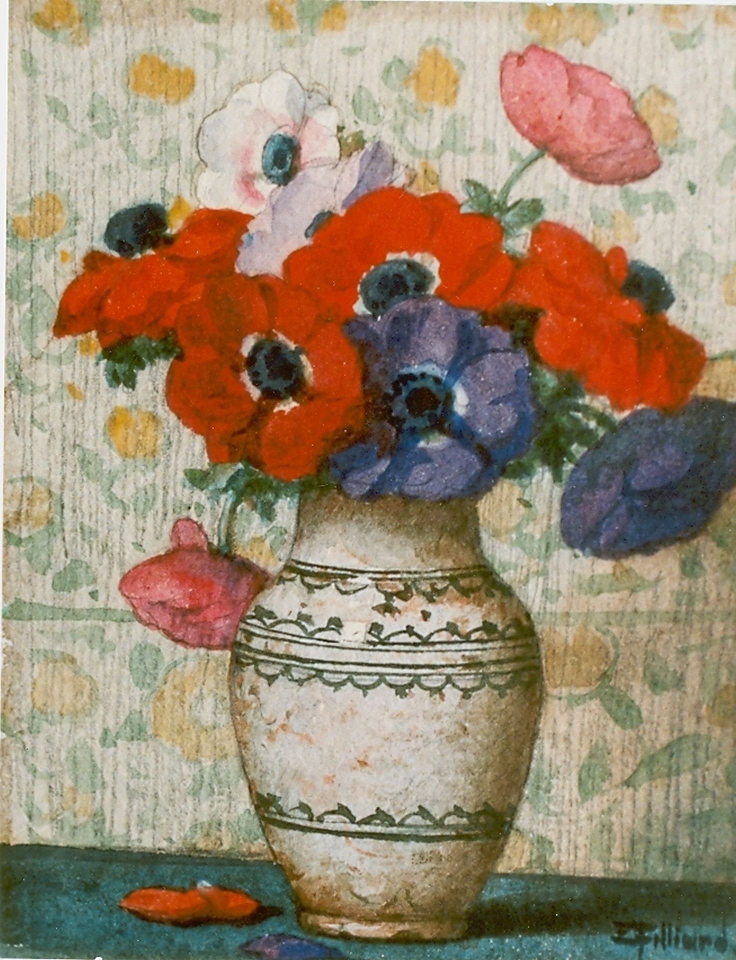 Ernest Filliard kunstwerk • aquarel • tekening • voorheen te koop Anemomen in een vaas
