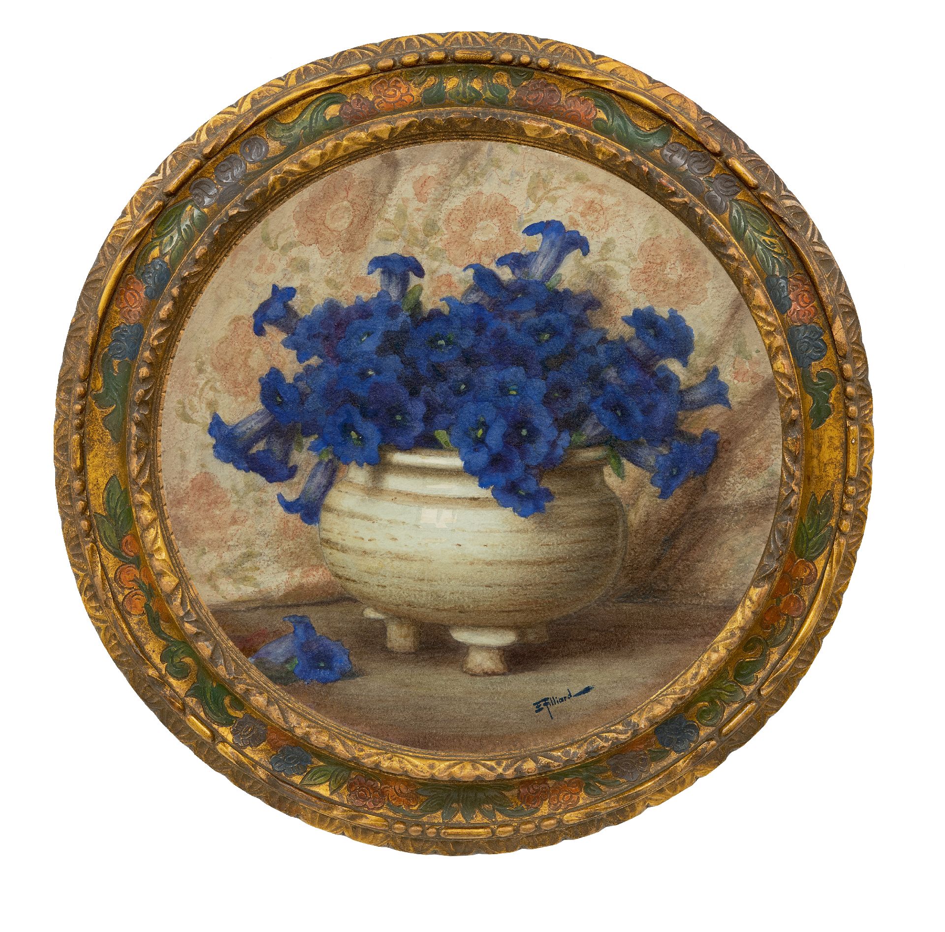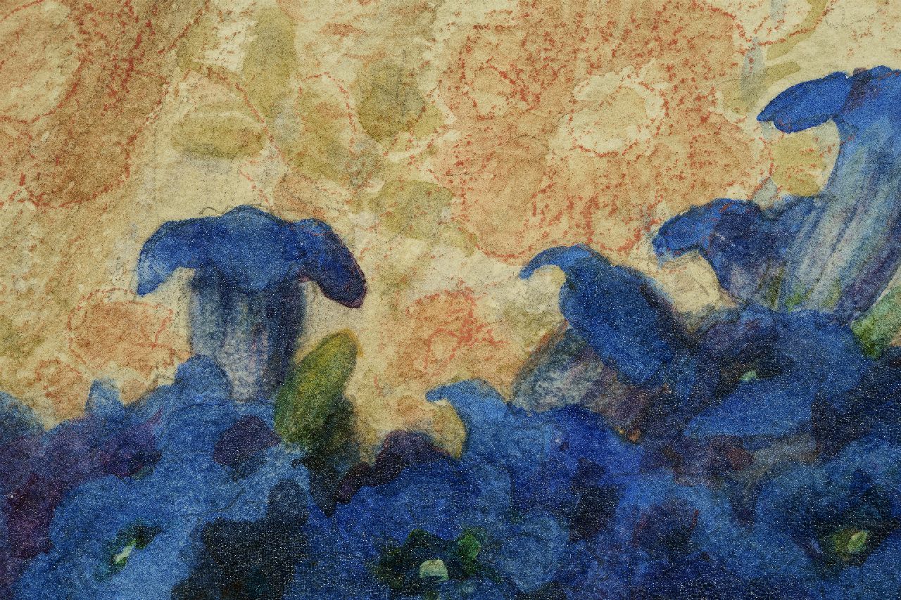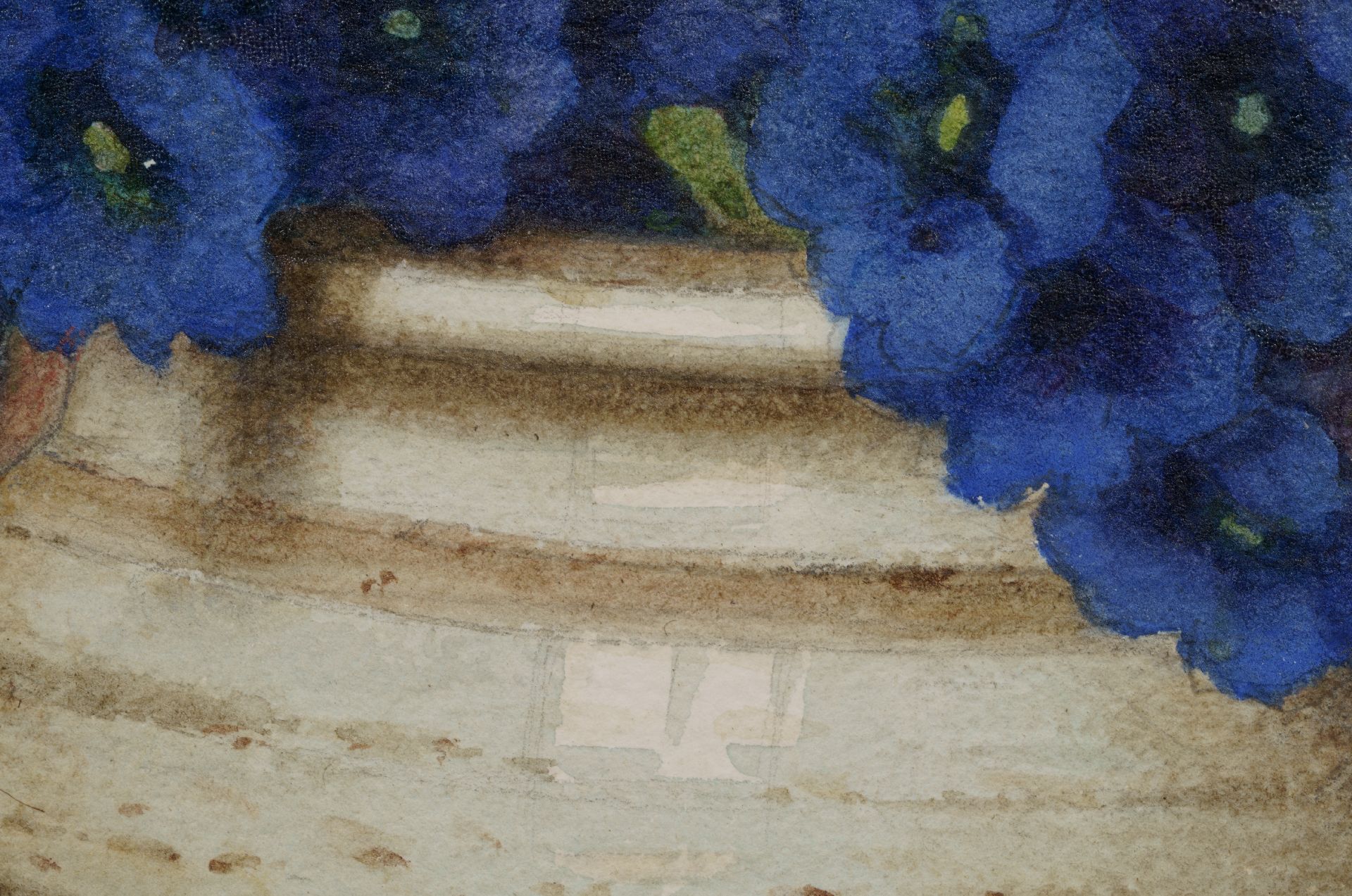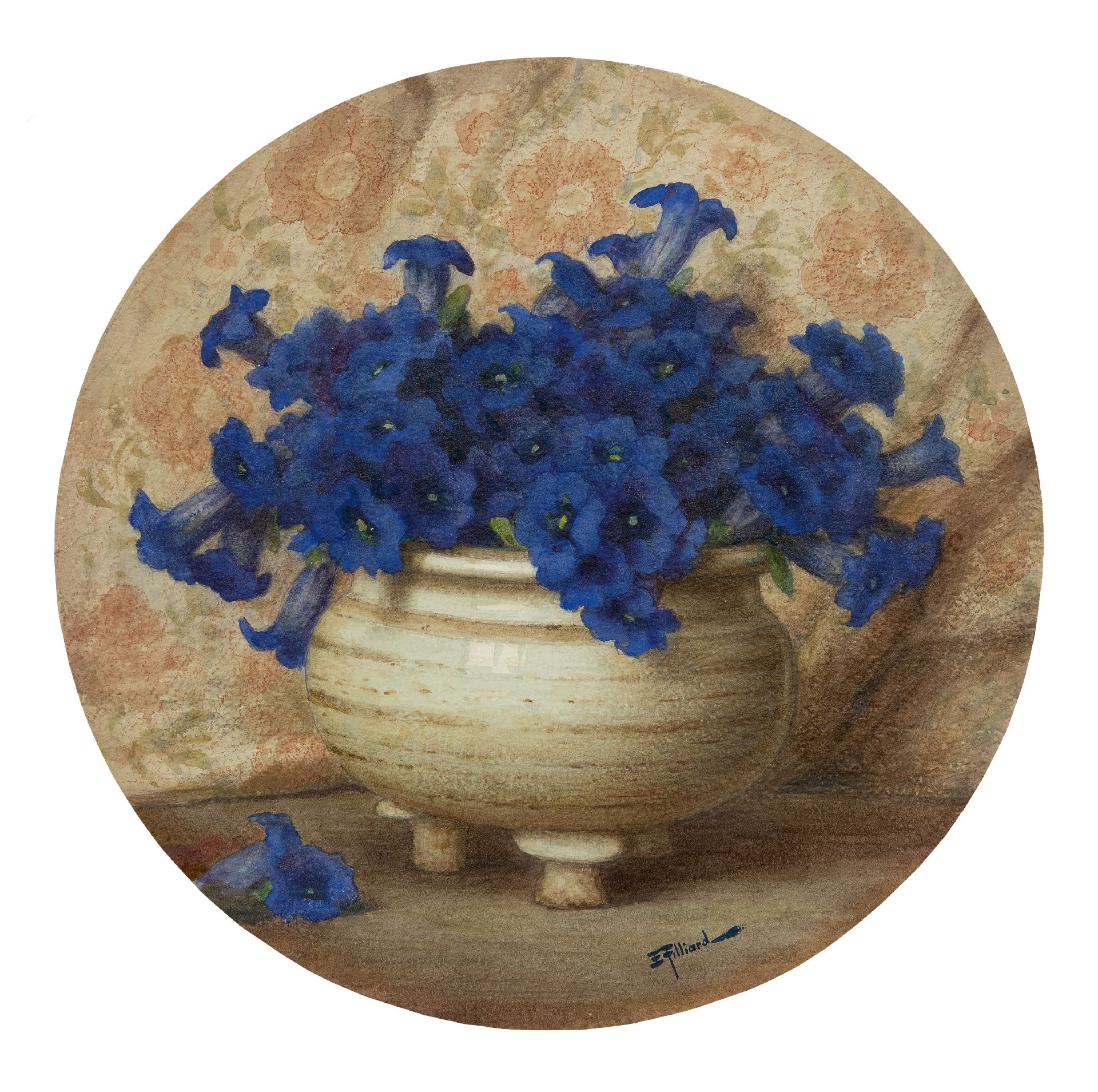 Ernest Filliard kunstwerk • aquarel • tekening • voorheen te koop Gentianen in aardewerk pot