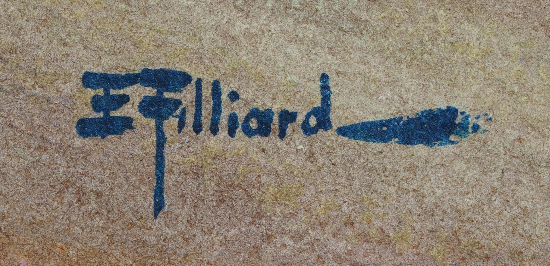 Ernest Filliard was een Frans aquarellist van bloemstillevens in veelal uitgesproken kleuren, geschikt in uiteenlopende soorten vazen en kommen. Hij was een leerling van portretschilder Benoît Molin en woonde en werkte in Chambéry. Filliard was lid van de Société des Artistes Français en werd in 1914 geridderd in het Légion d'honneur, de hoogste en belangrijkste Franse nationale onderscheiding.