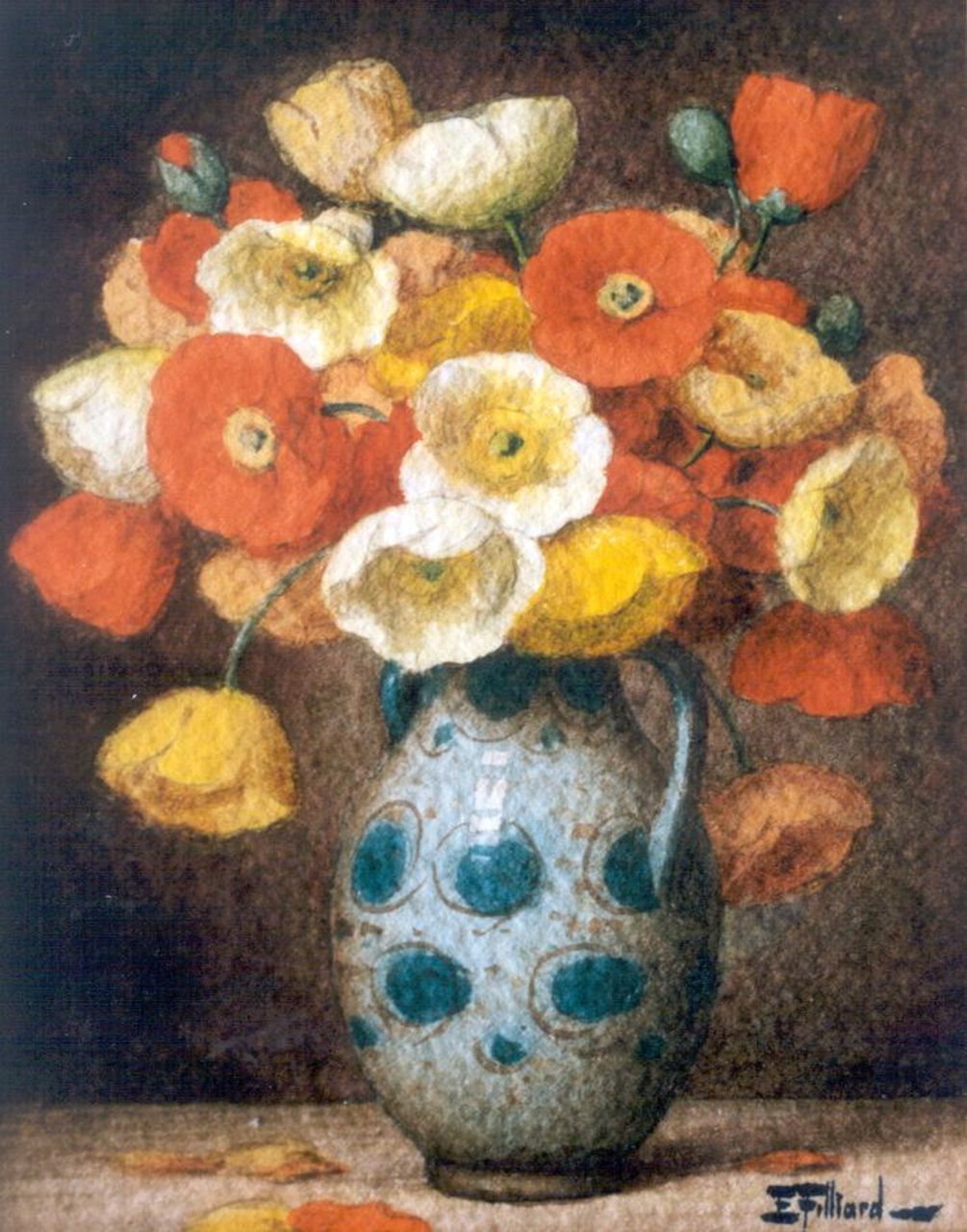 Ernest Filliard was een Frans aquarellist van bloemstillevens in veelal uitgesproken kleuren, geschikt in uiteenlopende soorten vazen en kommen. Hij was een leerling van portretschilder Benoît Molin en woonde en werkte in Chambéry. Filliard was lid van de Société des Artistes Français en werd in 1914 geridderd in het Légion d'honneur, de hoogste en belangrijkste Franse nationale onderscheiding.