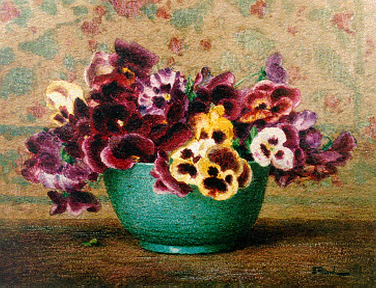 Ernest Filliard kunstwerk • aquarel • tekening • voorheen te koop Viooltjes in een kom
