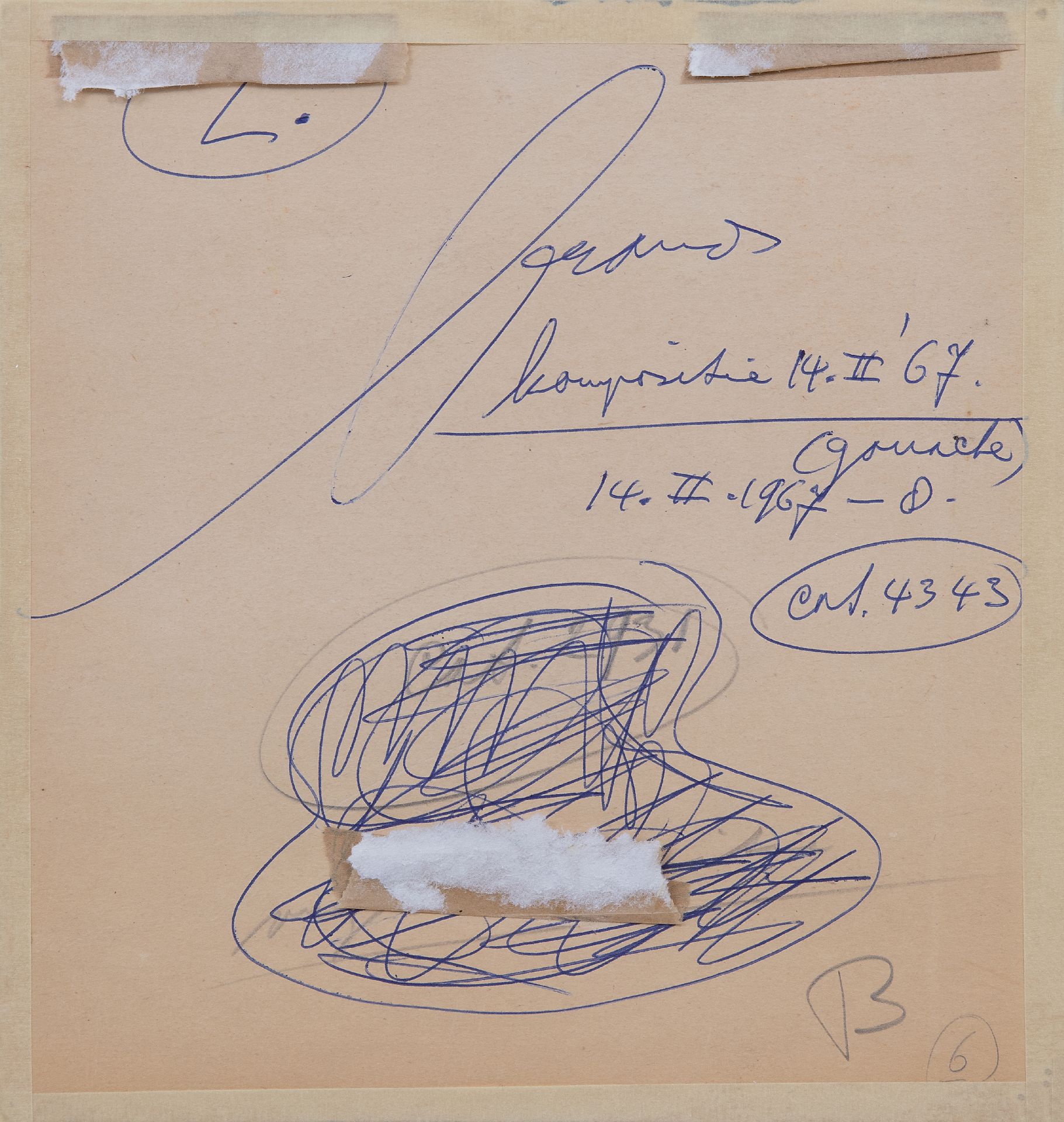 gouache op papier 22,1 x 20,7 cm, gesigneerd rechtsonder en verso gedateerd 14.II.1967
