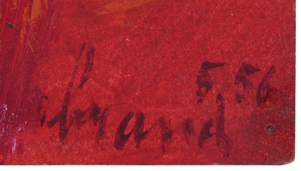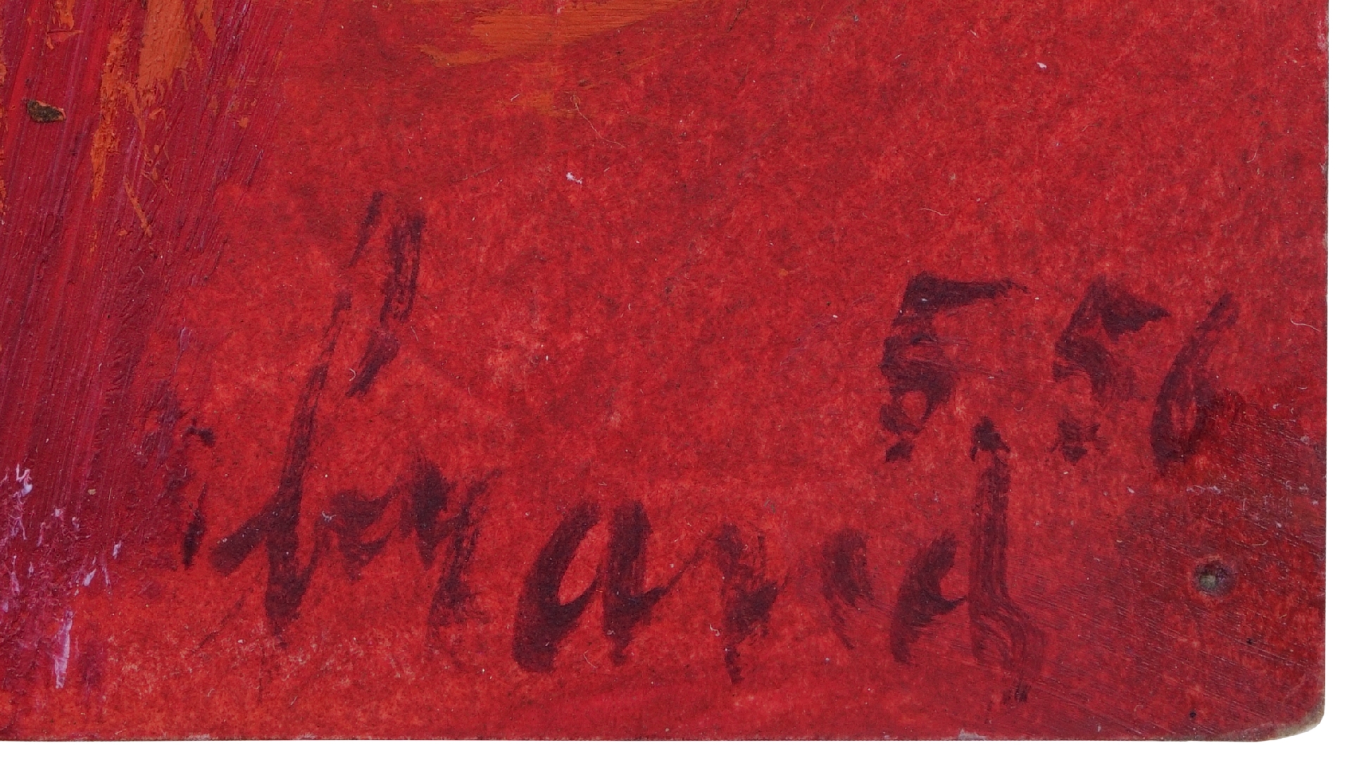 olieverf op papier 21,5 x 22,5 cm, gesigneerd rechtsonder en gedateerd 5.56