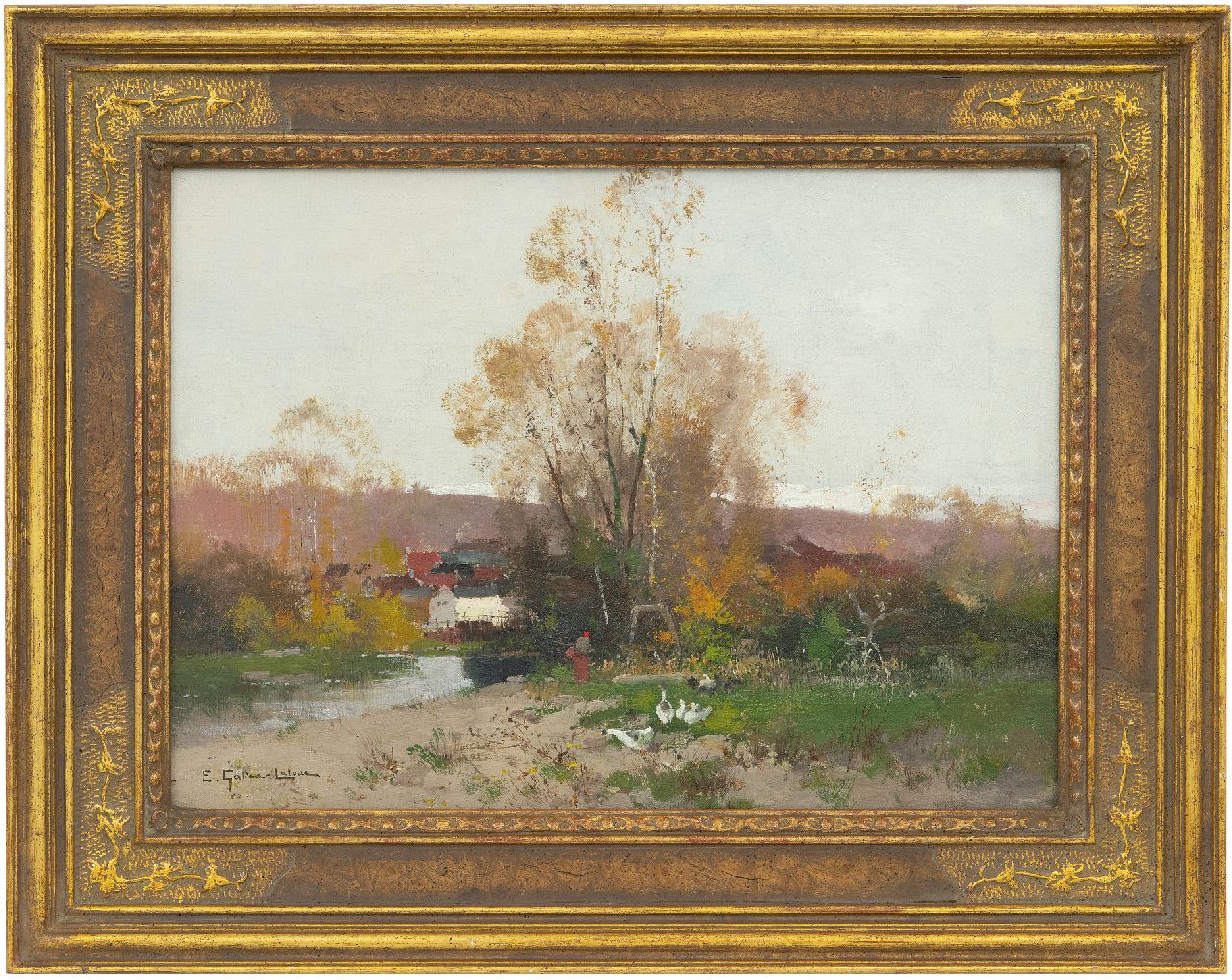 Eugène Galien-Laloue kunstwerk • schilderij • voorheen te koop Herfstlandschap met ganzenhoedster