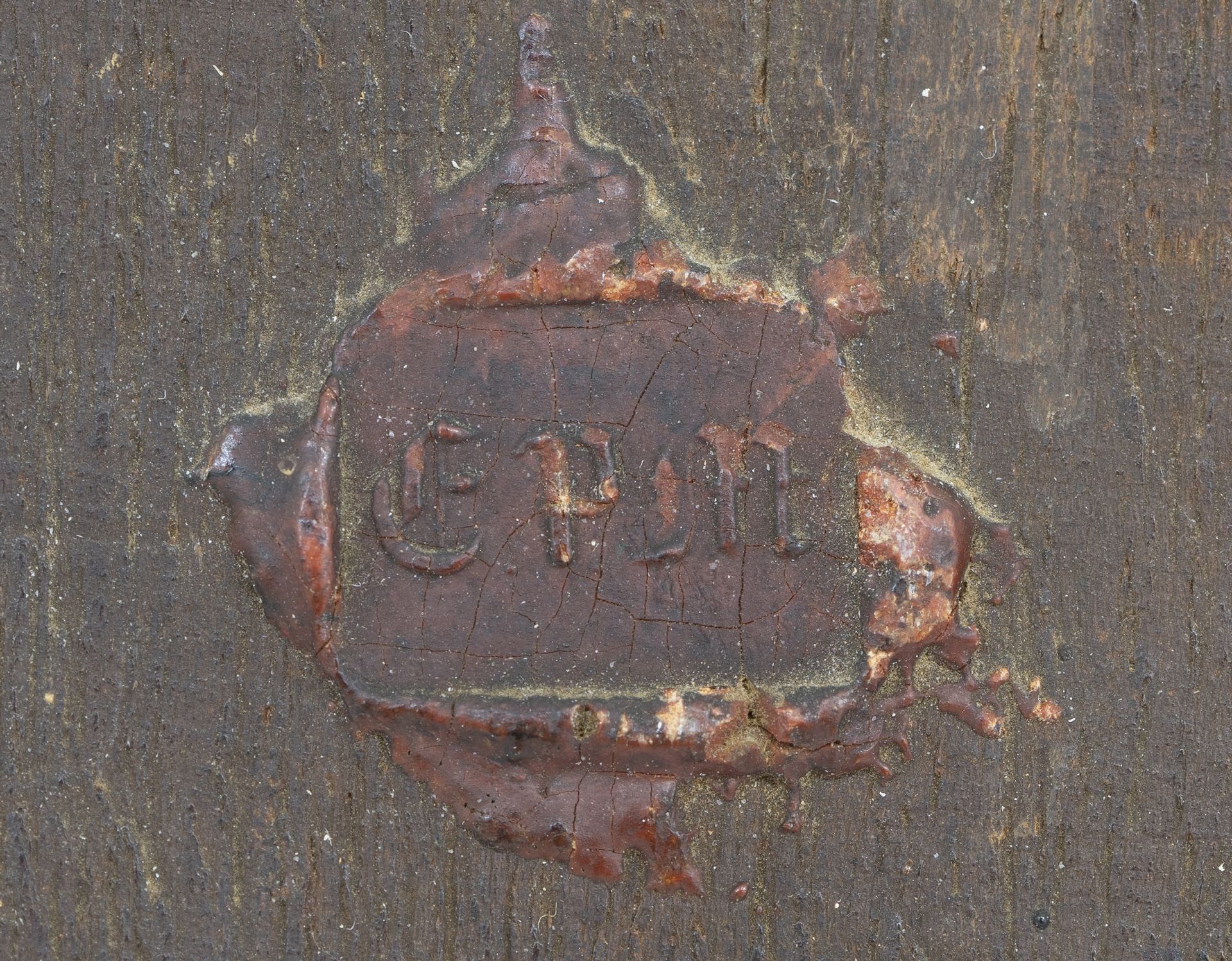 olieverf op paneel 12,9 x 18,1 cm, gesigneerd linksonder (resten)