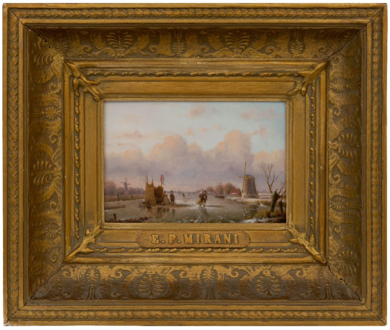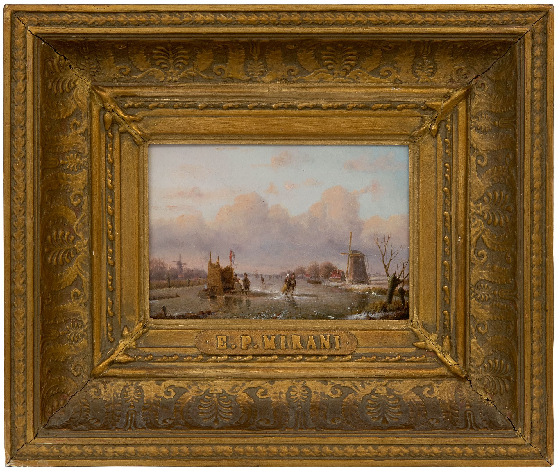 De Amsterdamse schilder Everardus Mirani was een 19e-eeuwse kunstenaar die zich volgens kenners vrijwel geheel wijdde aan het uitbeelden van het winterlandschap. Zijn voorkeur ging uit naar besneeuwde bostaferelen met hoge, kale eiken en sterk ondergeschikte figuren en gebouwen, zoals hij van Andreas Schelfhout leerde. Maar in de voetsporen van zijn leermeester schilderde hij ook diverse Gelderse zomerlandschappen en vergezichten bij Haarlem. De schilder nam tussen 1840 en 1880 actief deel aan de tentoonstellingen van Levende Meesters en werd in 1850 lid van Arti et Amicitiae.