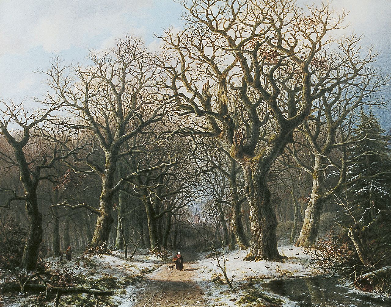 De Amsterdamse schilder E.B.G.P. Mirani behoorde tot de 19e-eeuwse kunstenaars die zich geheel toelegden op uitbeelding van het winterlandschap. Zijn voorkeur ging uit naar besneeuwde bosgezichten met hoge, kale eiken en daaraan sterk ondergeschikte figuren en gebouwen, geheel zoals de romantische traditie het wilde.