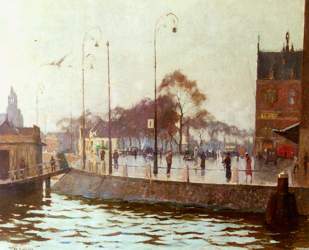 Evert Jan Ligtelijn kunstwerk • schilderij • voorheen te koop Gezicht op het Stationsplein, Amsterdam