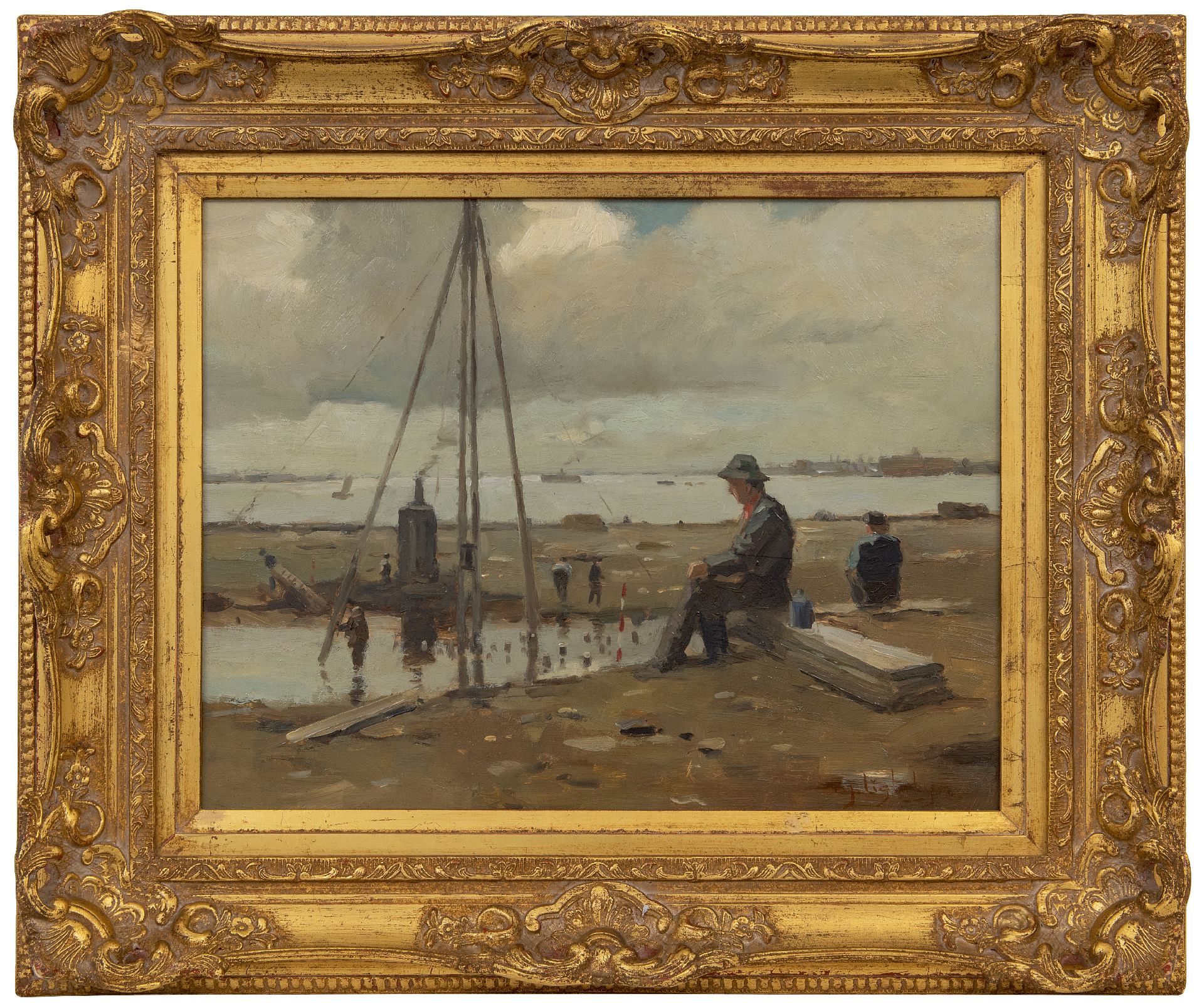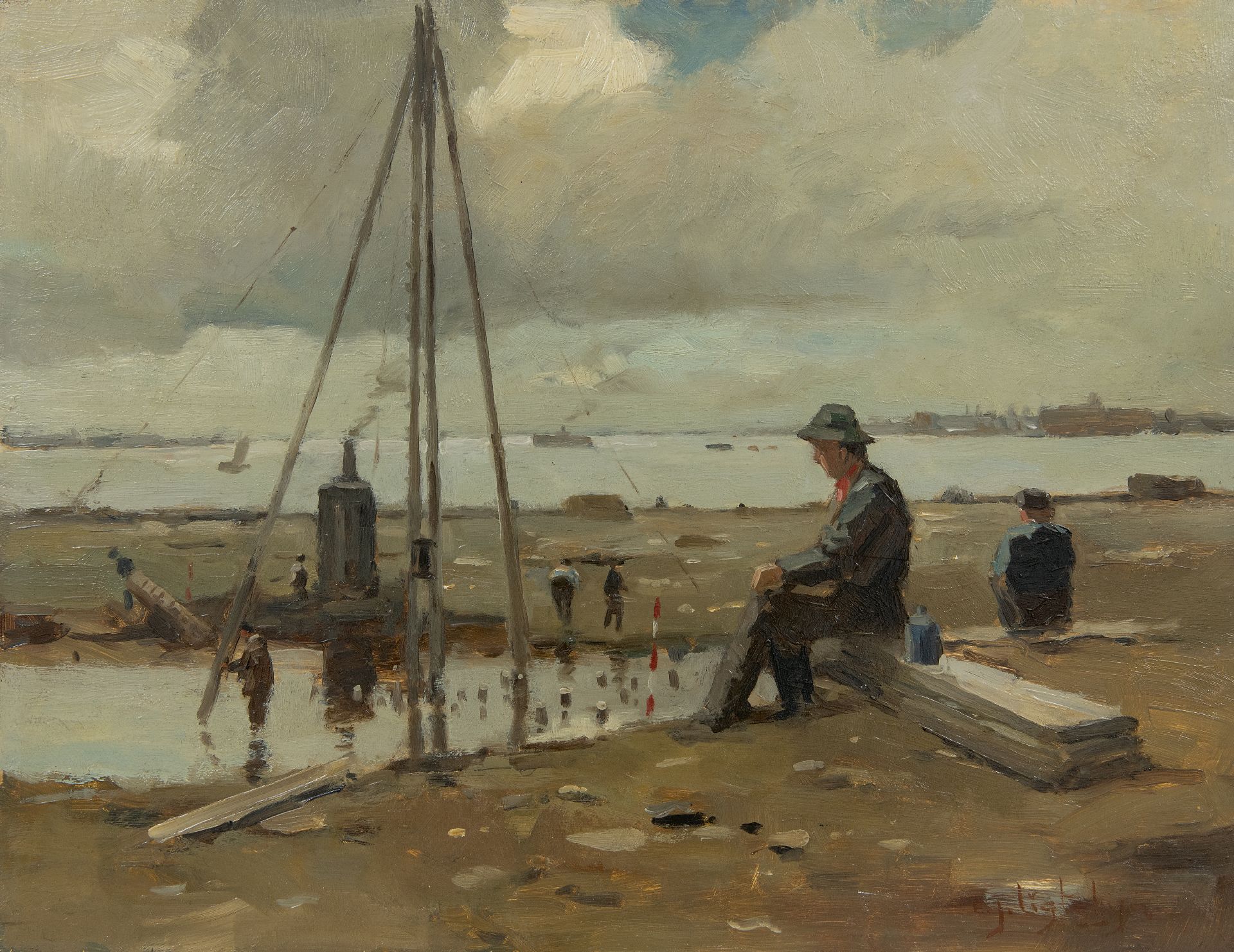 Evert Jan Ligtelijn kunstwerk • schilderij • te koop Schafttijd bij de bouwput