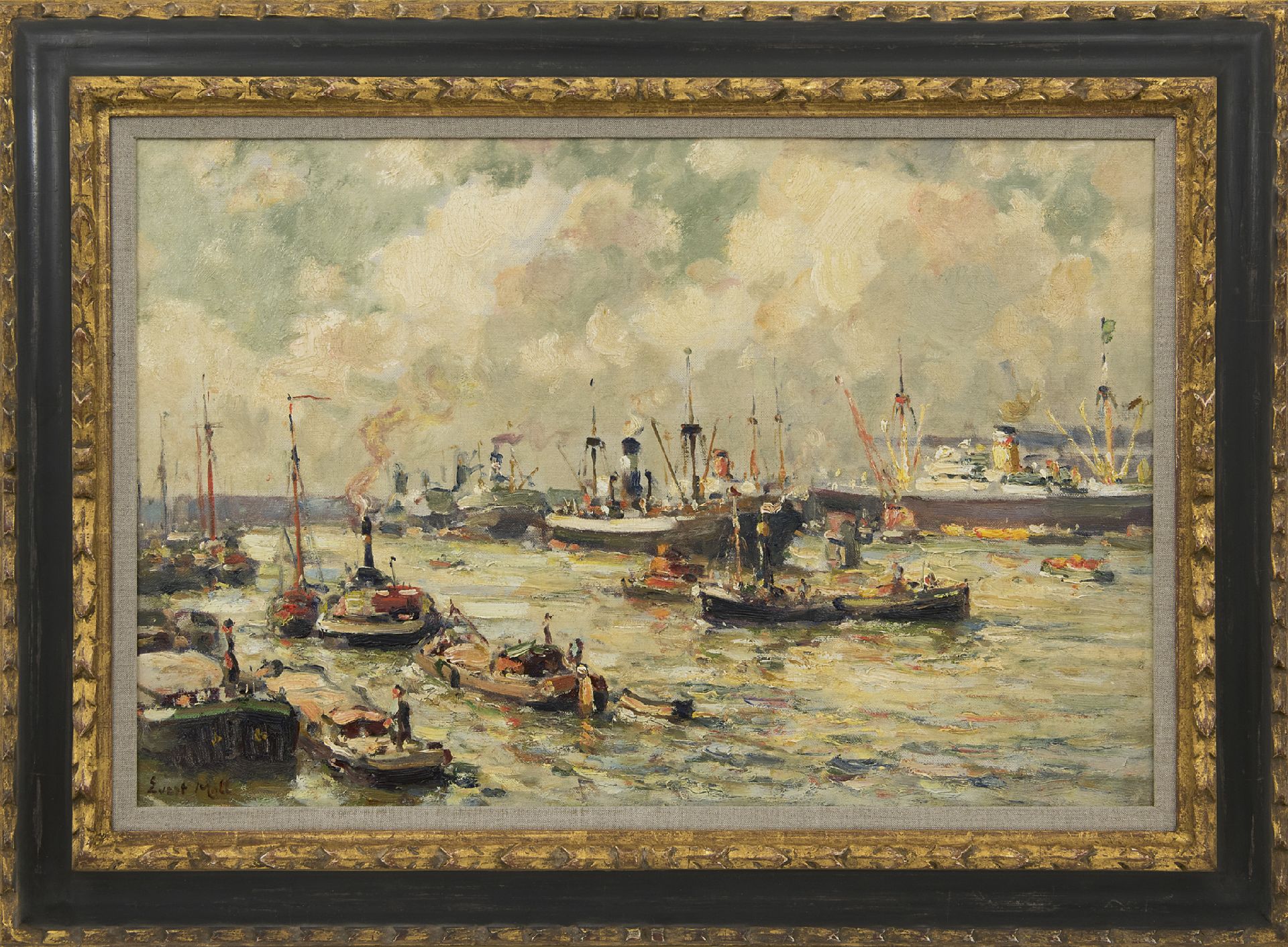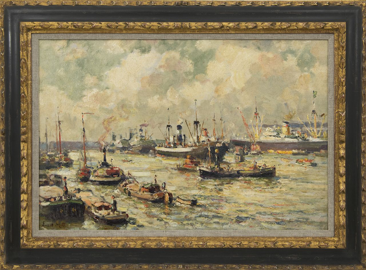 Evert Moll | Bedrijvigheid in de haven, olieverf op doek, 68,5 x 99,0 cm, gesigneerd r.o.