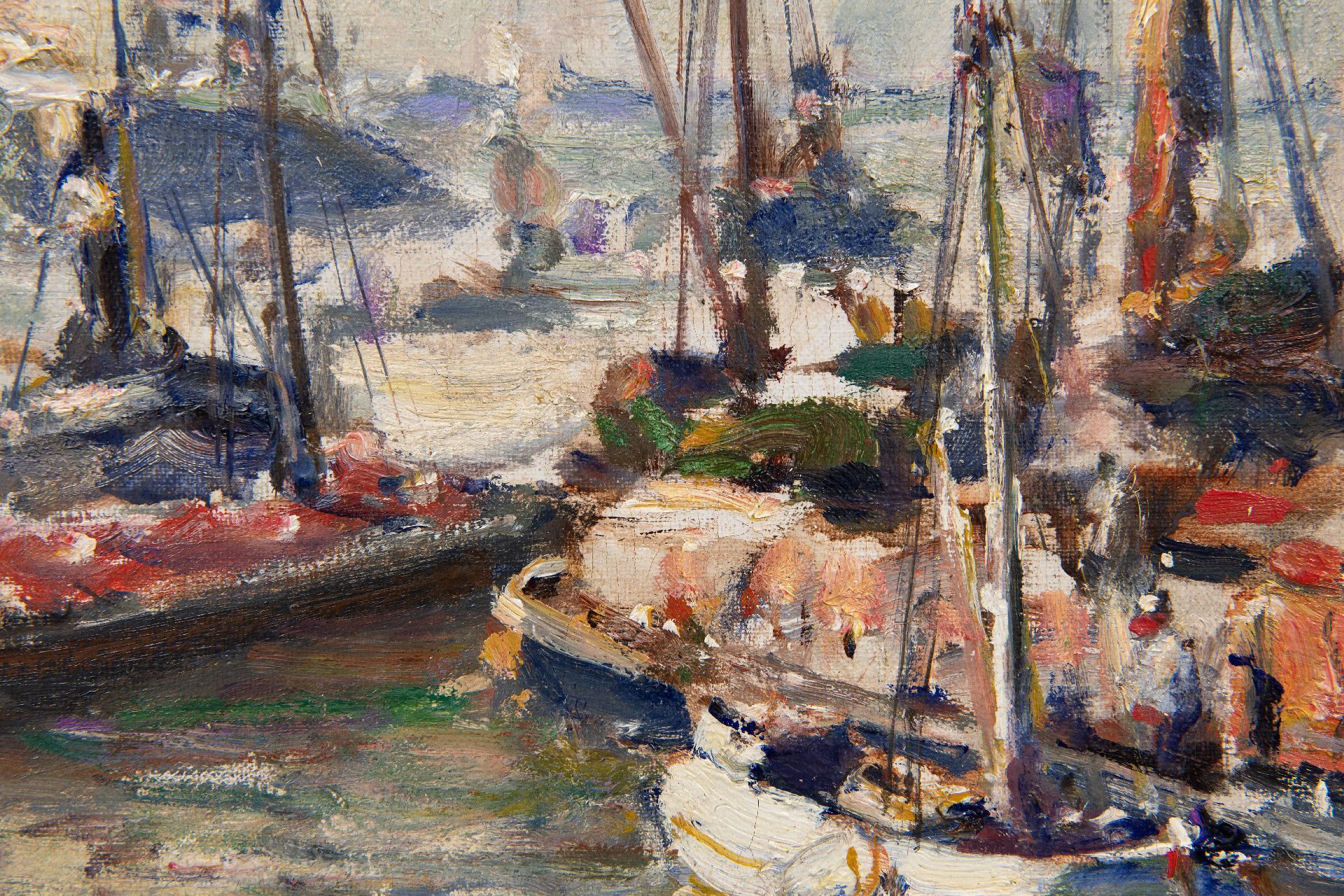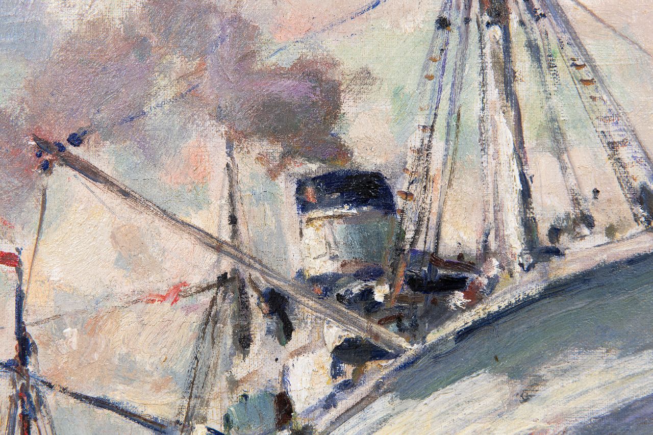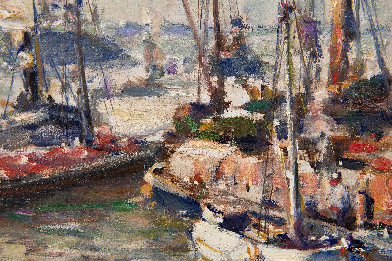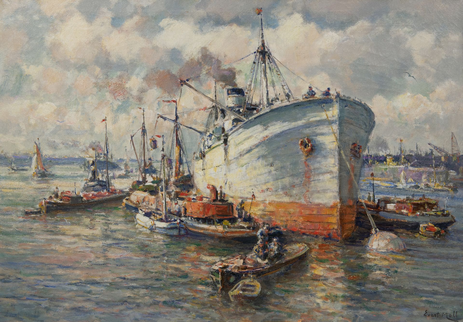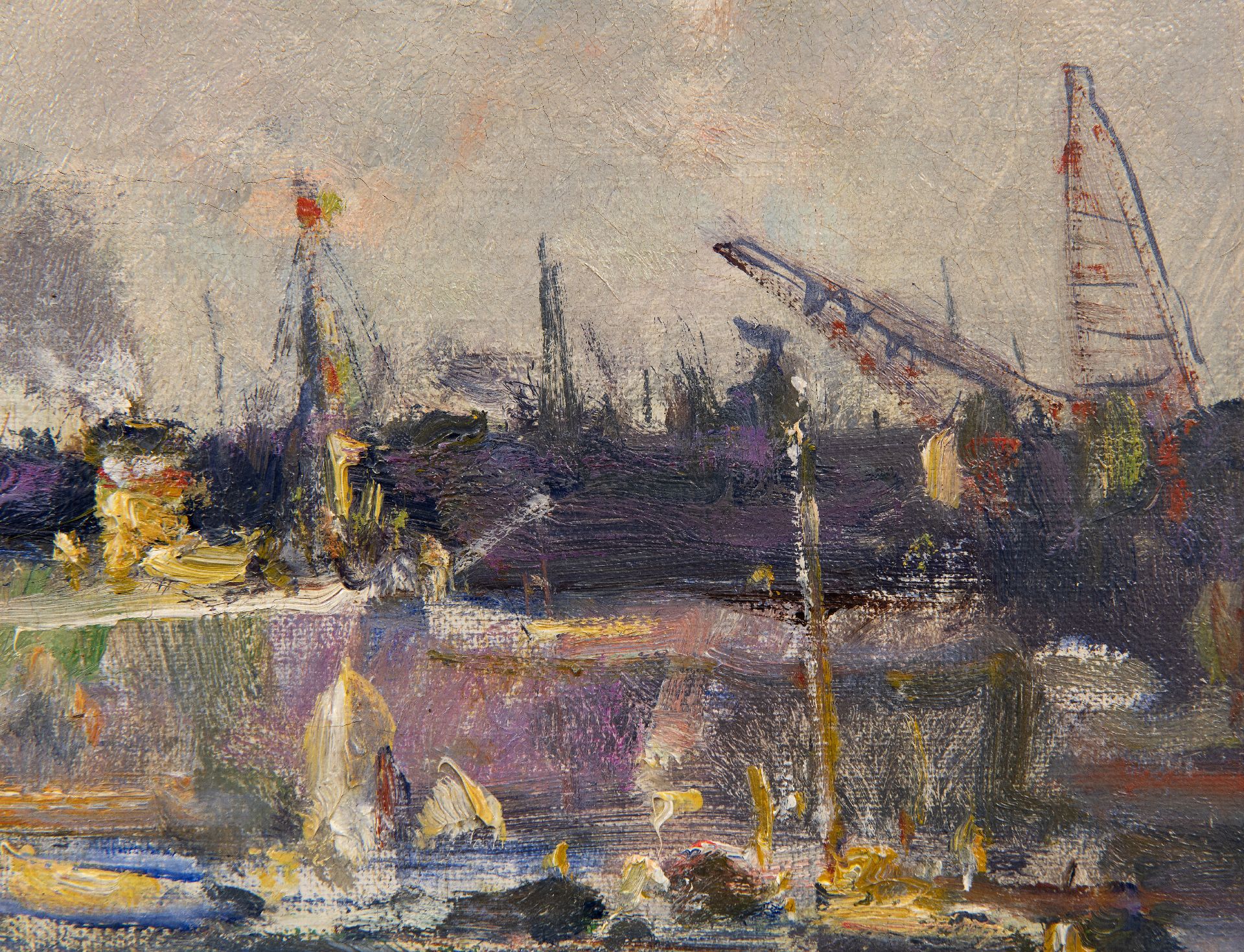 Evert Moll kunstwerk • schilderij • te koop Bedrijvigheid in de haven