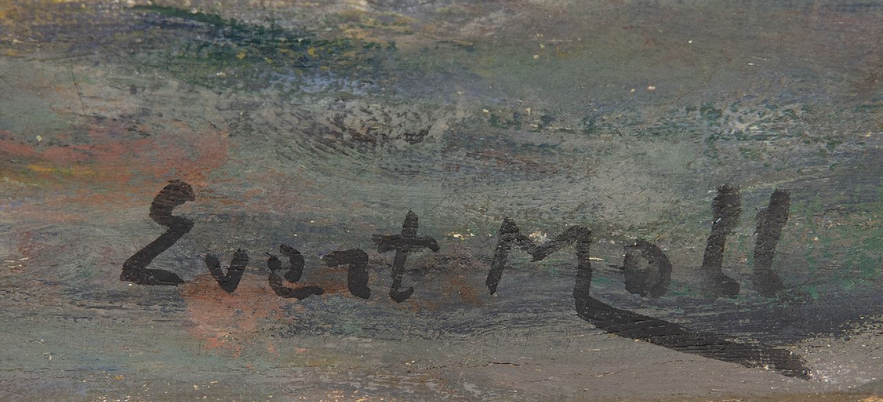 Evert Moll is vooral bekend geworden met zijn voorstellingen van de Rotterdamse haven en de scheepvaart op de Nieuwe Maas die hij in de jaren 20 en 30 van de vorige eeuw schilderde. Begonnen rond 1900 als navolger van de Haagse School verlegde Evert Moll zijn werkterrein al spoedig naar de kades en bruggen van de Maasstad. Ook de dynamiek van het havenbedrijf vormde voor de schilder een bron van inspiratie. Daarnaast blonk hij uit in tal van andere genres. Zo schilderde hij ook stadsgezichten, landschappen en kleurige, gedurfde bloemstillevens. Evert Moll was autodidact, maar kreeg raadgevingen van Willem Maris en Willem Roelofs.