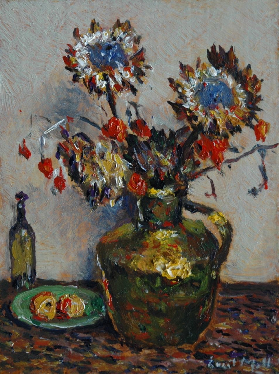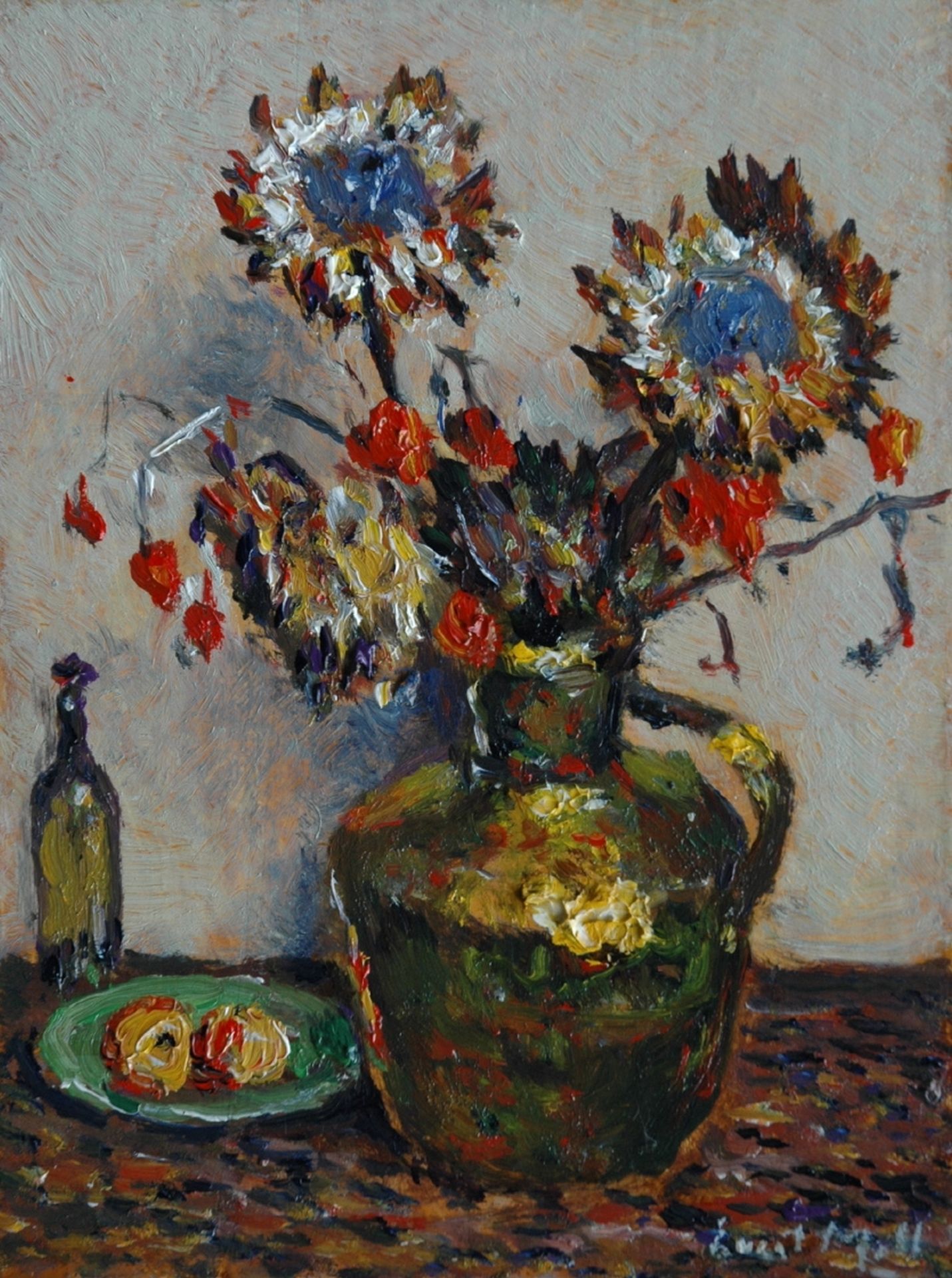 Evert Moll kunstwerk • schilderij • voorheen te koop Bloemen in koperen melkbus