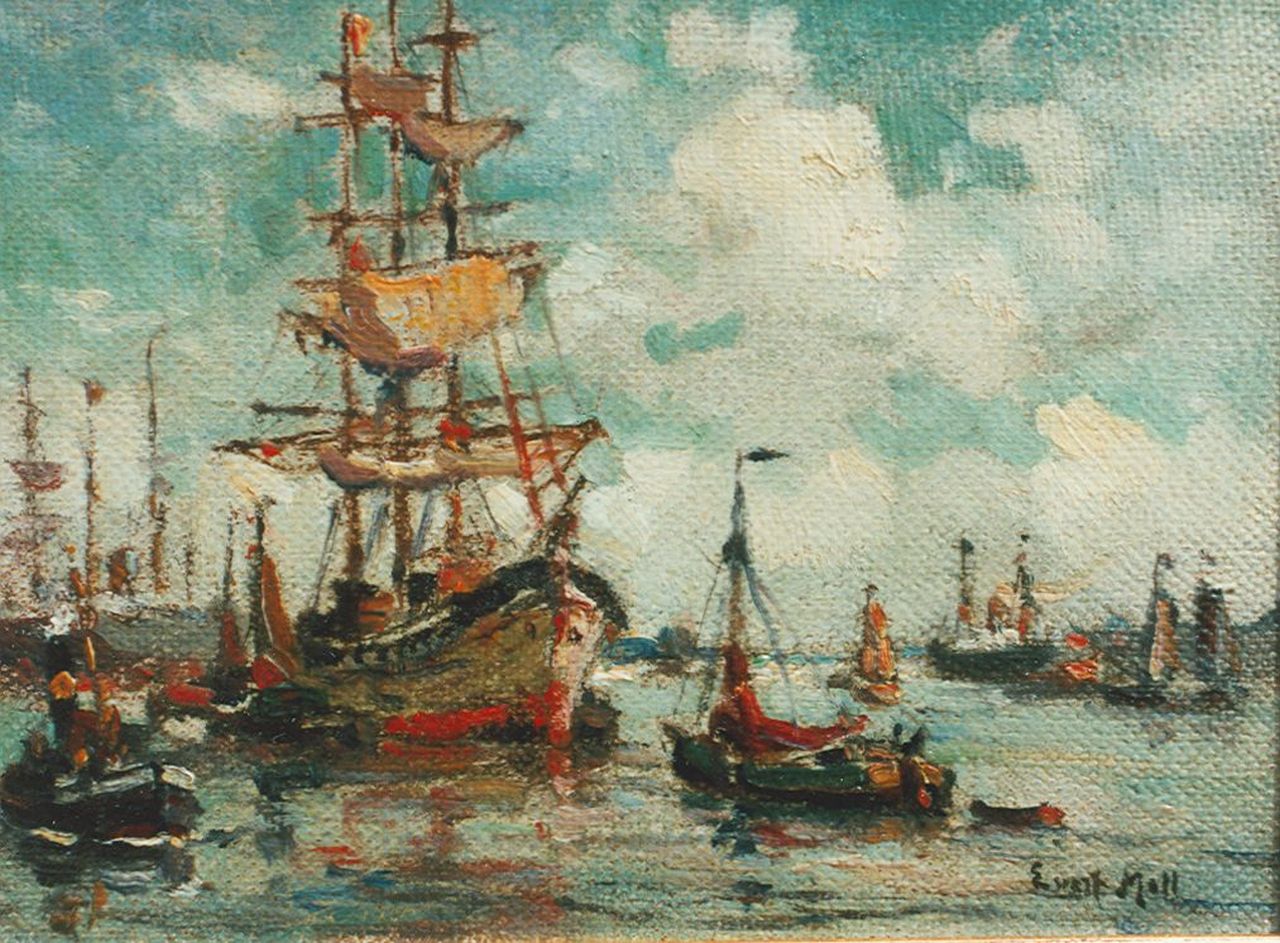 Evert Moll | Scheepvaartverkeer bij Rotterdam, olieverf op doek, 40,4 x 60,0 cm, gesigneerd r.o.