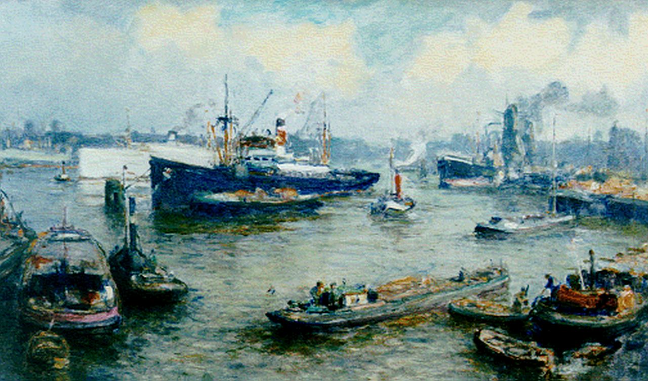 Evert Moll kunstwerk • schilderij • voorheen te koop Haven van Rotterdam