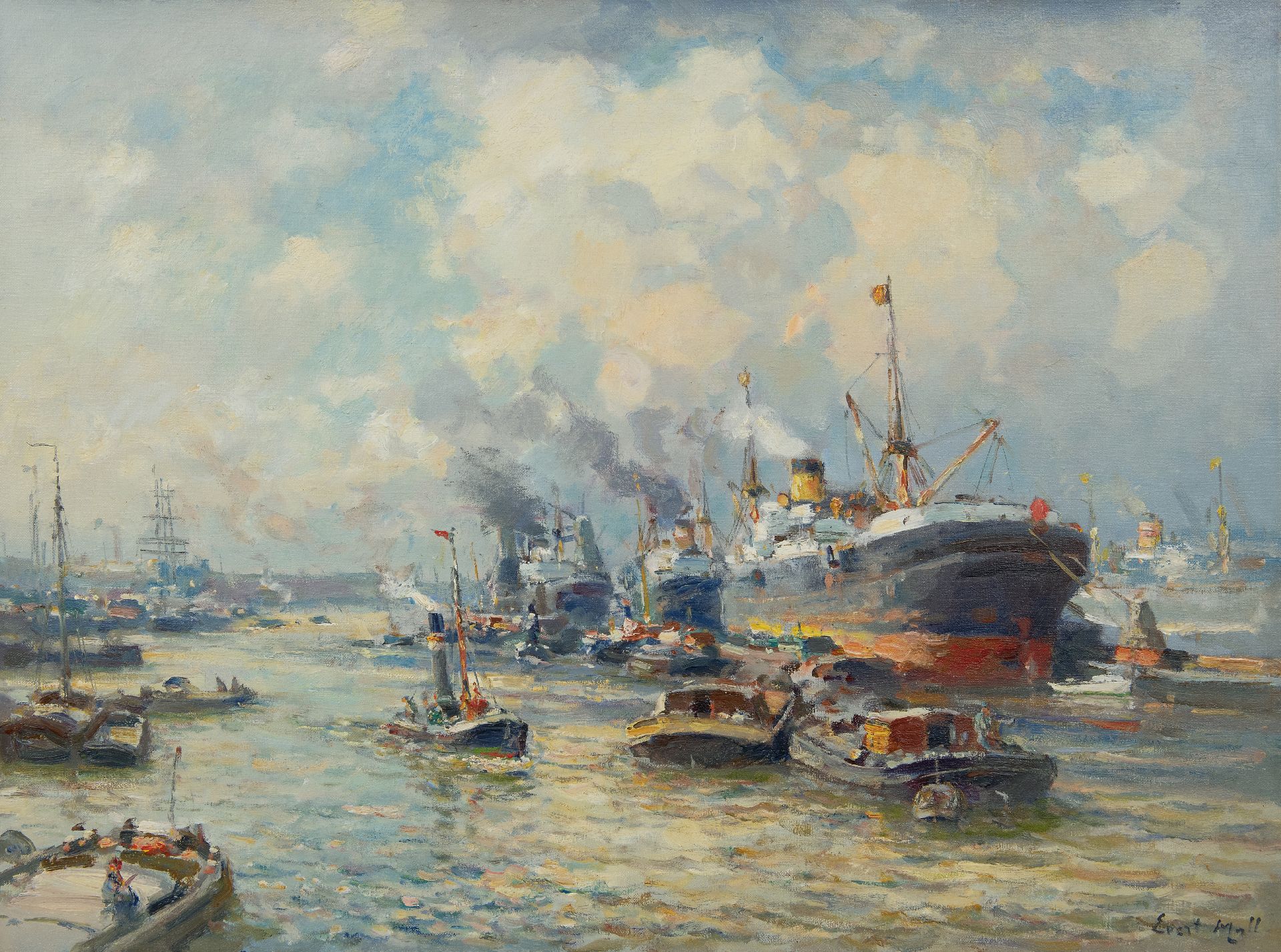Evert Moll kunstwerk • schilderij • voorheen te koop Havengezicht, Rotterdam