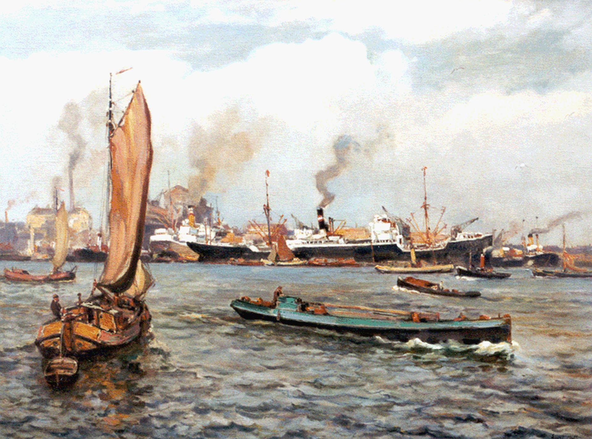 Evert Moll kunstwerk • schilderij • voorheen te koop Havengezicht, Rotterdam