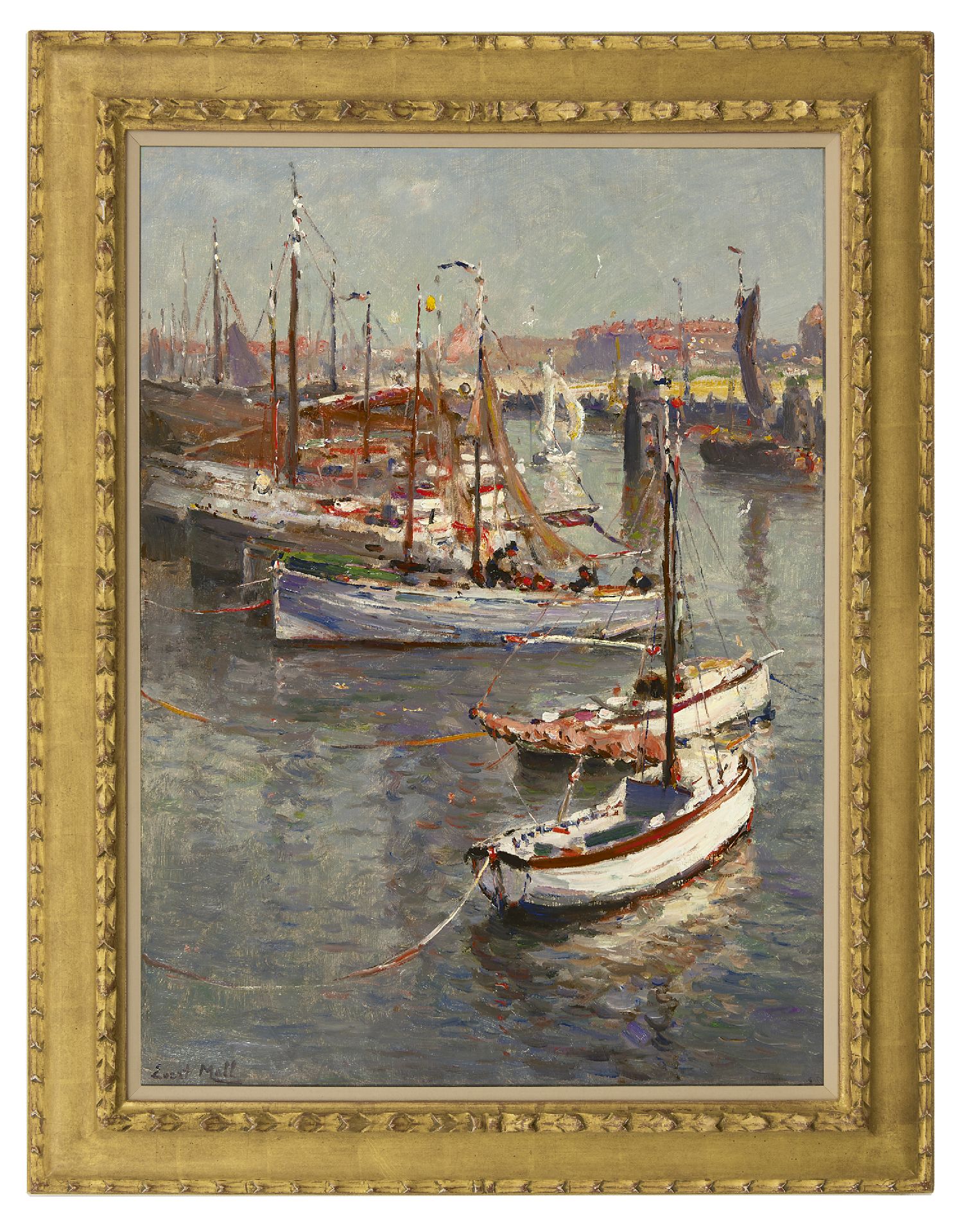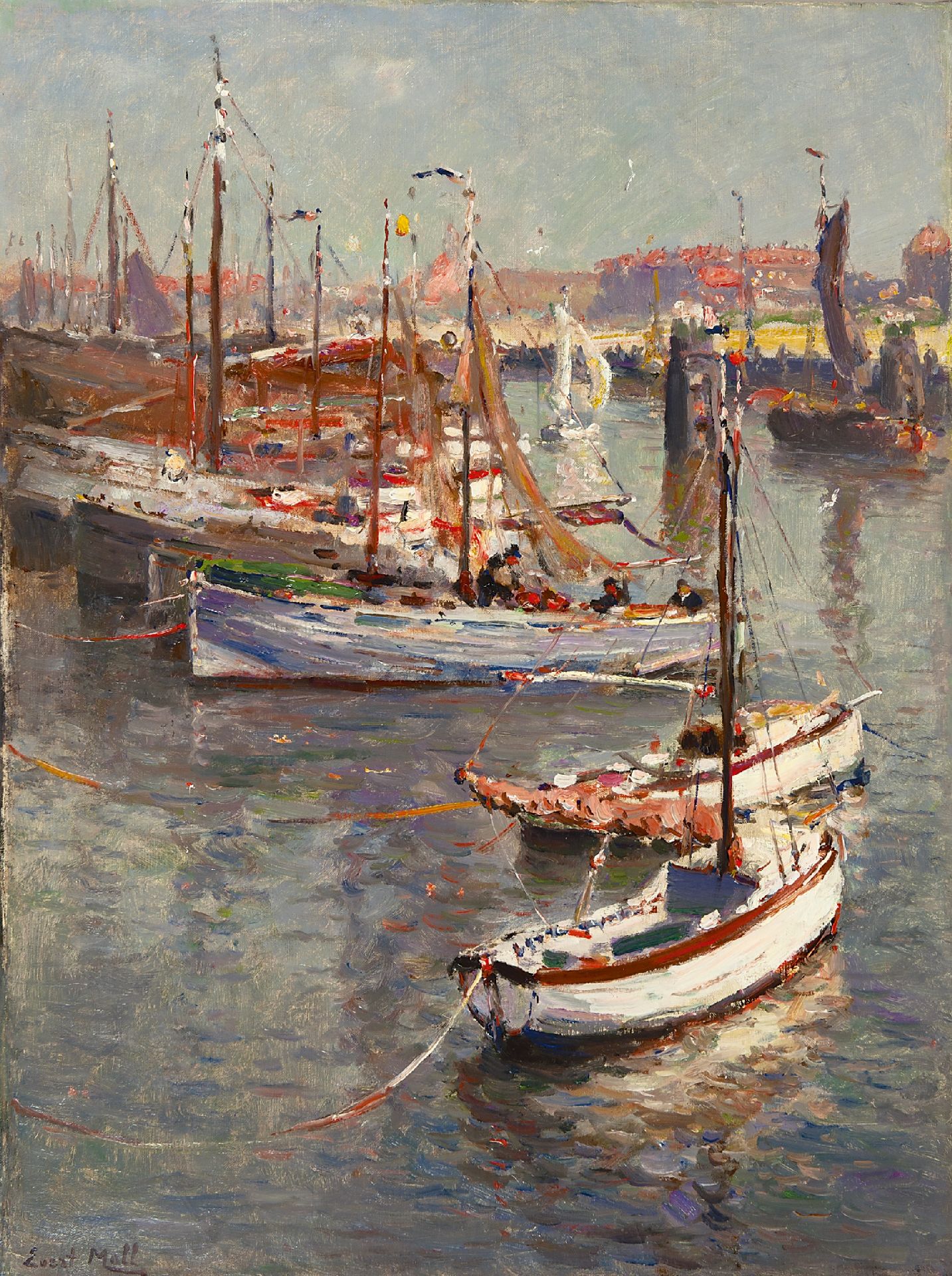 Evert Moll kunstwerk • schilderij • voorheen te koop Havengezicht Scheveningen