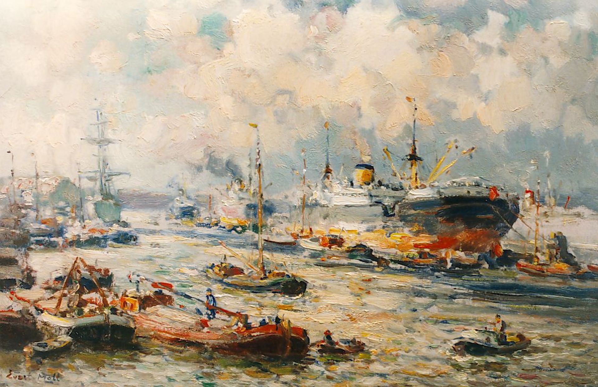 Evert Moll kunstwerk • schilderij • voorheen te koop Havengezicht