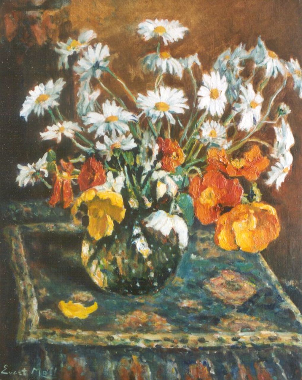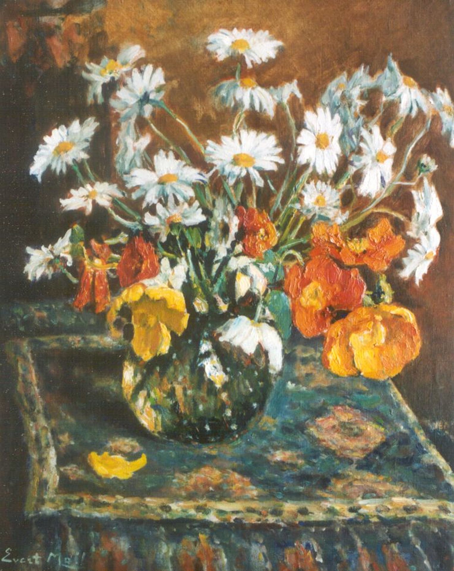 Evert Moll kunstwerk • schilderij • voorheen te koop Margrieten en tulpen