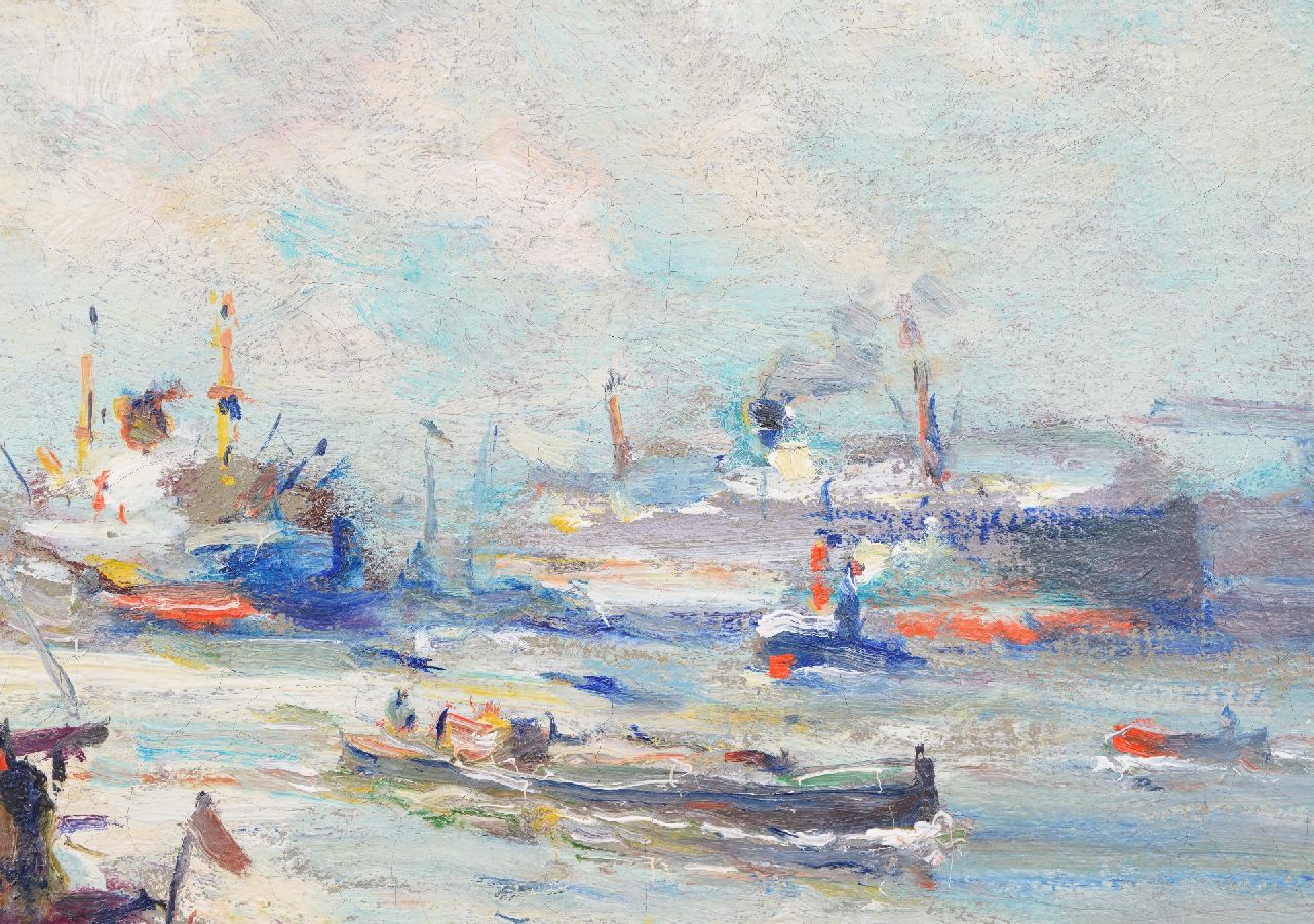 Evert Moll kunstwerk • schilderij • te koop Scheepvaartverkeer bij Rotterdam