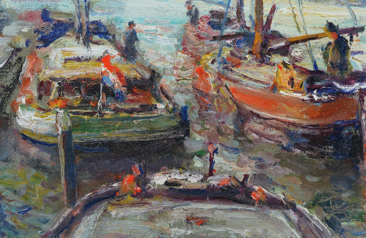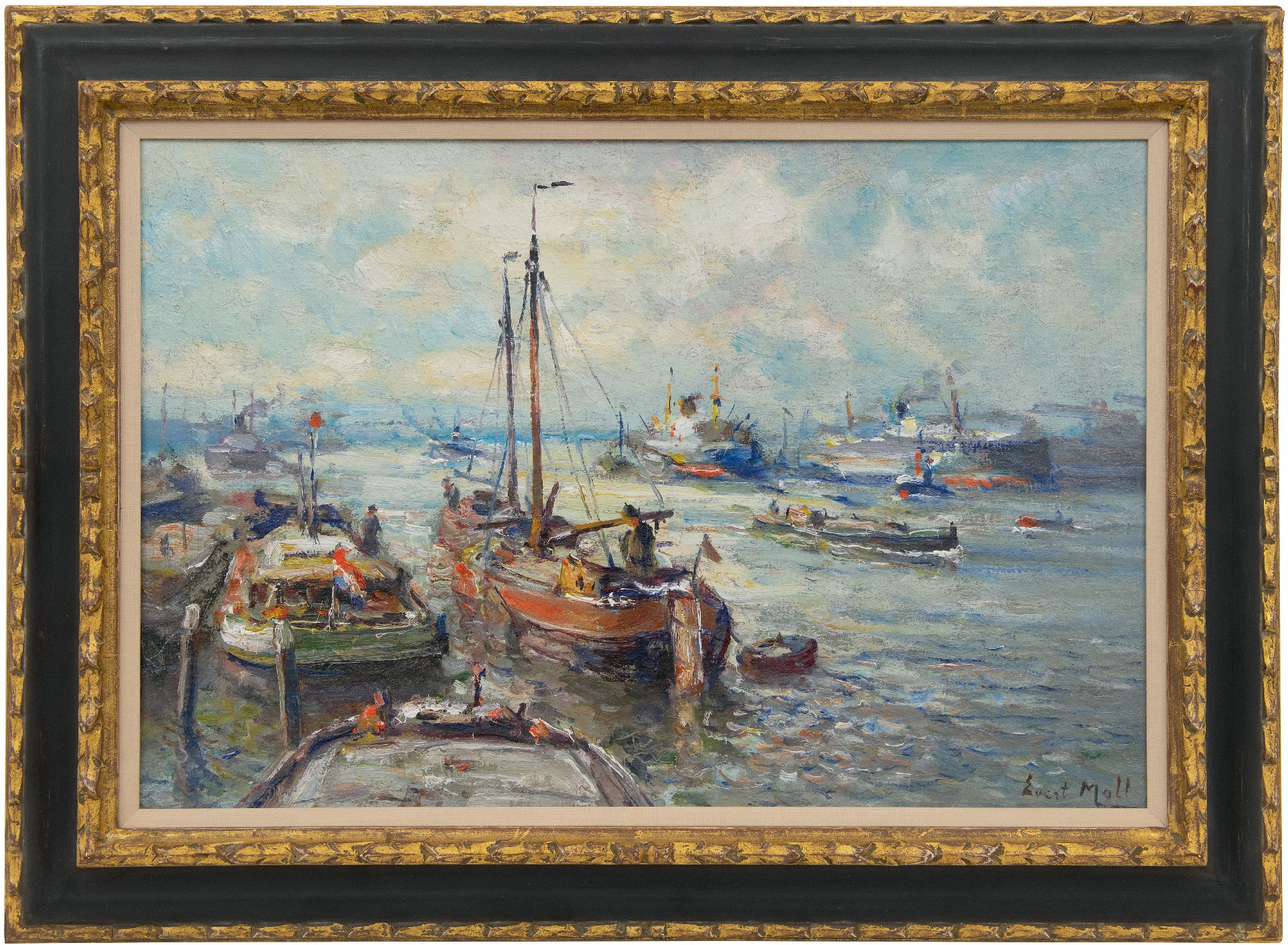Evert Moll is vooral bekend geworden met zijn voorstellingen van de Rotterdamse haven en de scheepvaart op de Nieuwe Maas die hij in de jaren 20 en 30 van de vorige eeuw schilderde. Begonnen rond 1900 als navolger van de Haagse School verlegde Evert Moll zijn werkterrein al spoedig naar de kades en bruggen van de Maasstad. Ook de dynamiek van het havenbedrijf vormde voor de schilder een bron van inspiratie. Daarnaast blonk hij uit in tal van andere genres. Zo schilderde hij ook stadsgezichten, landschappen en kleurige, gedurfde bloemstillevens. Evert Moll was autodidact, maar kreeg raadgevingen van Willem Maris en Willem Roelofs.