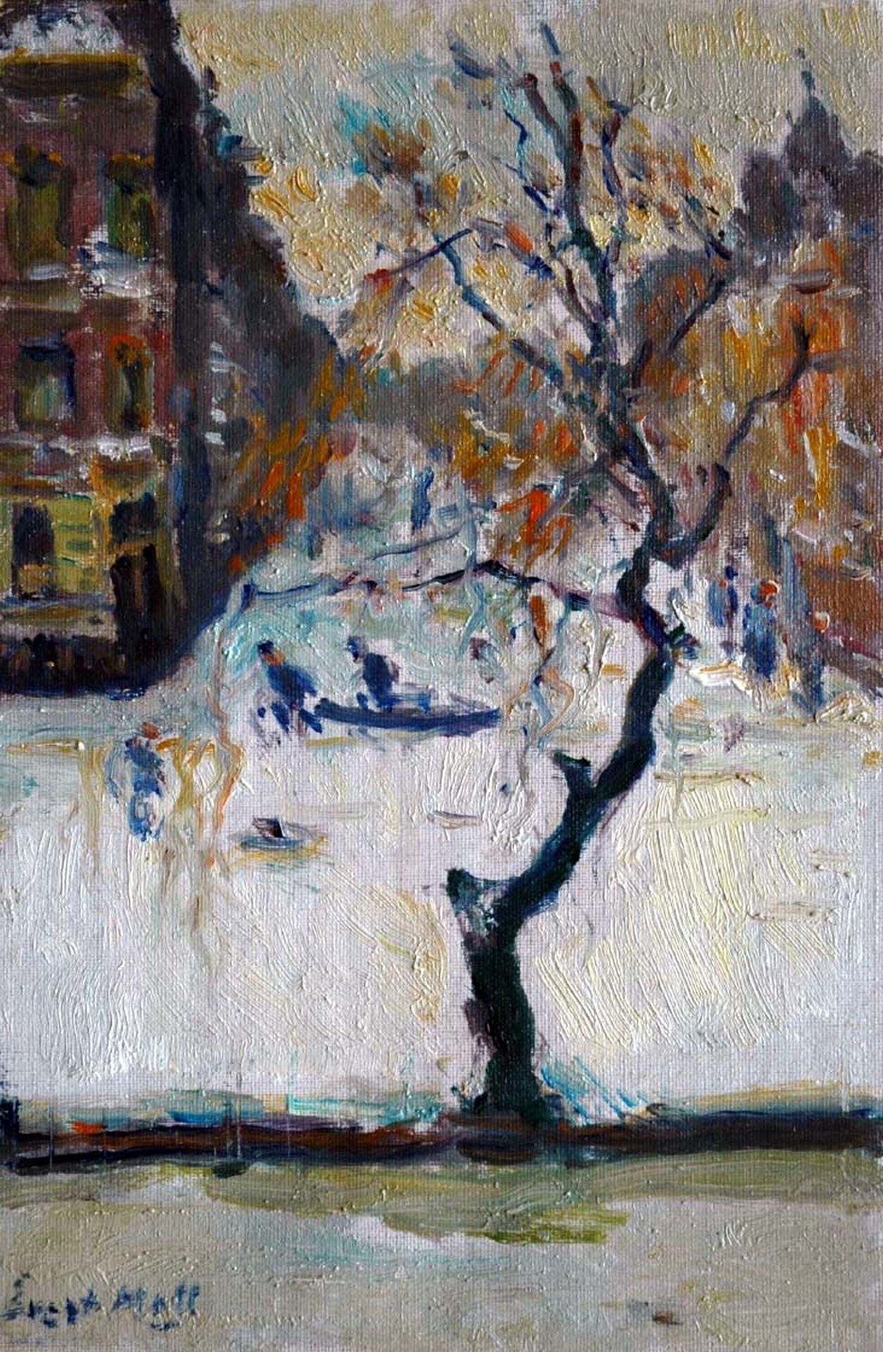 Evert Moll kunstwerk • schilderij • voorheen te koop Stadsgracht in de winter