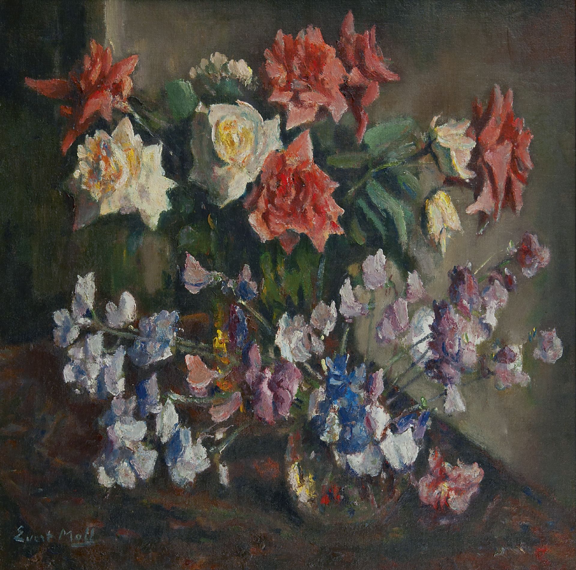 Evert Moll kunstwerk • schilderij • voorheen te koop Stilleven met rozen